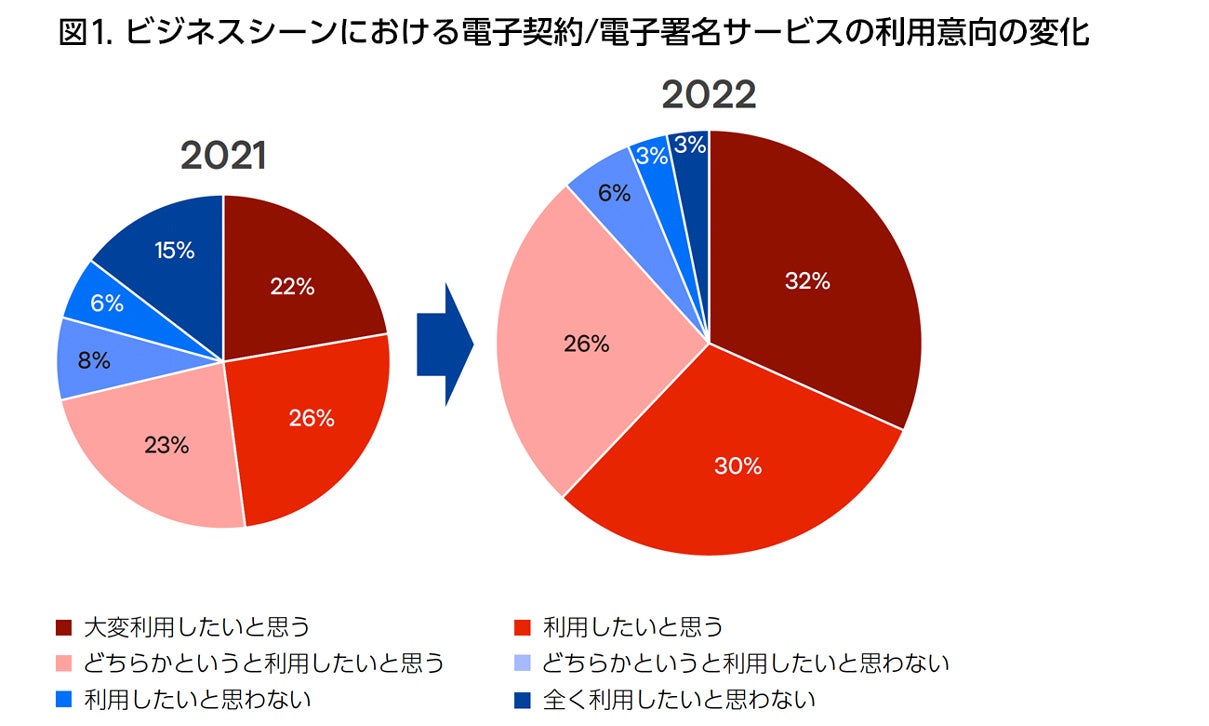 【図1:ビジネスシーンにおける電子契約/電子署名サービスの利用意向の変化】