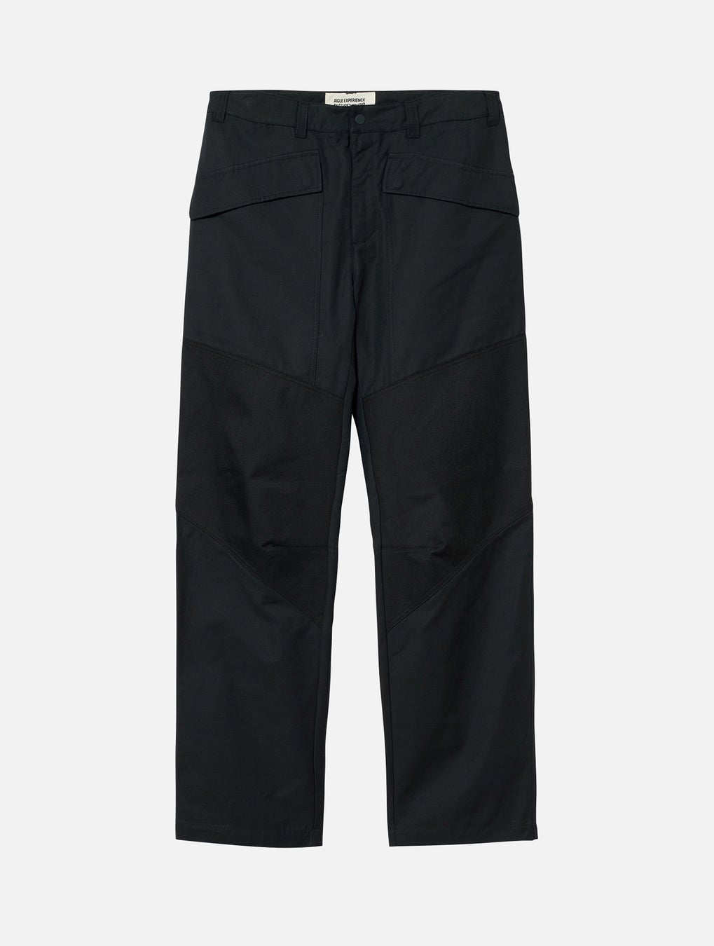 生地の切替と大きなパッチポケットがアクセントになったワイドパンツ。