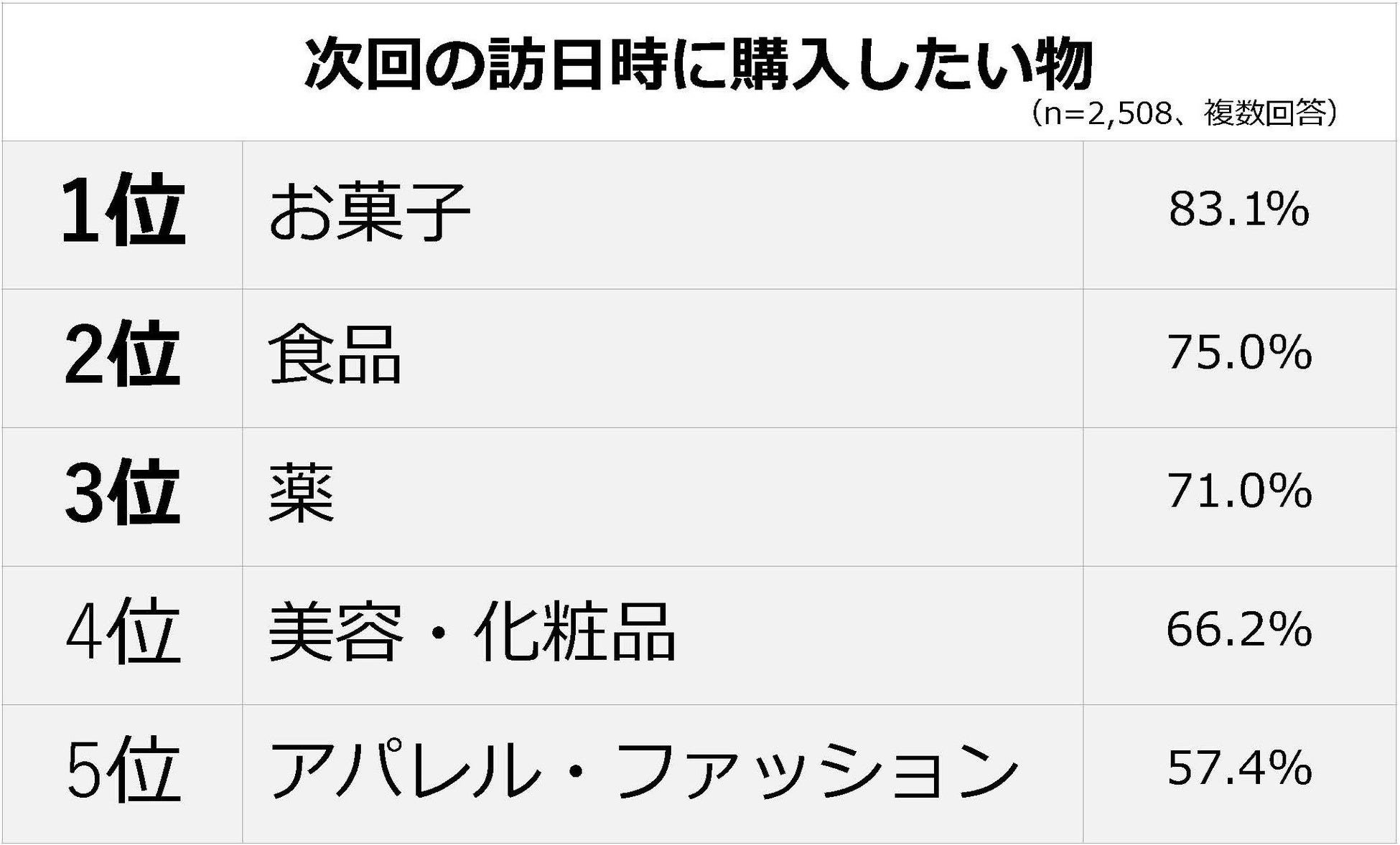 調査結果④:訪日時に購入したい物1位は「お菓子」3位に「薬」