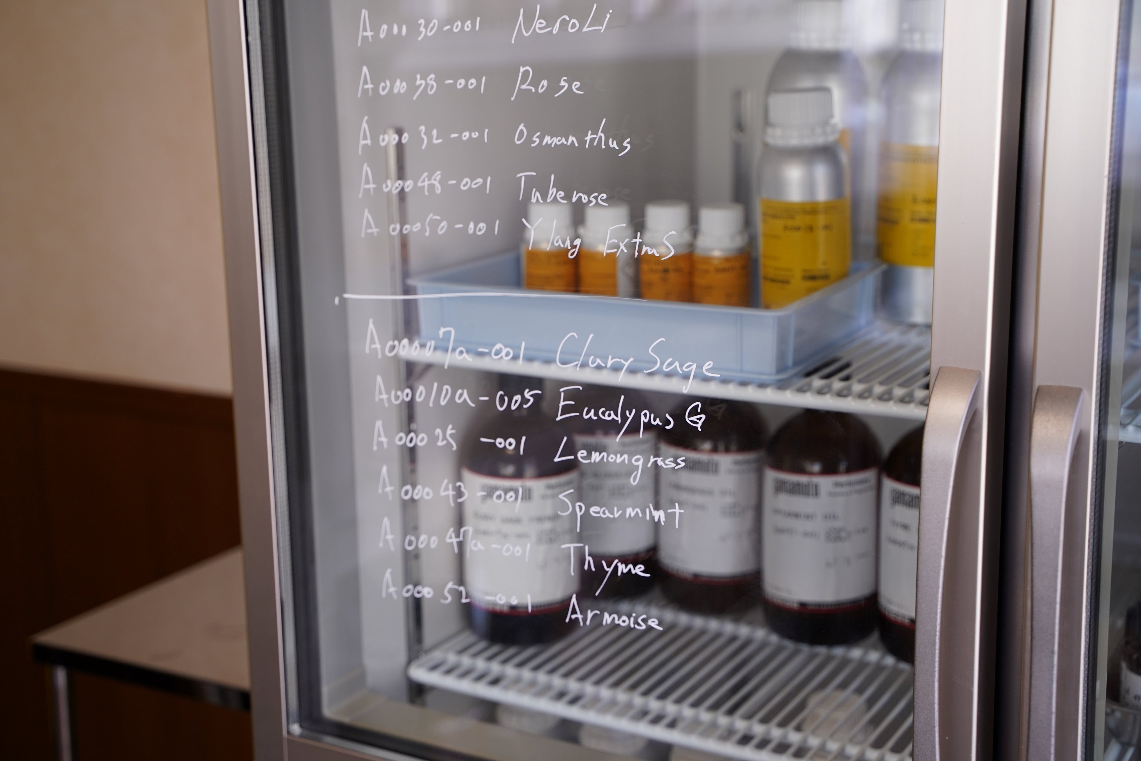 弊社が持つ200種類以上の天然精油を使い、お客さまの好みや、施設のコンセプトに合わせて独自に調香します。
