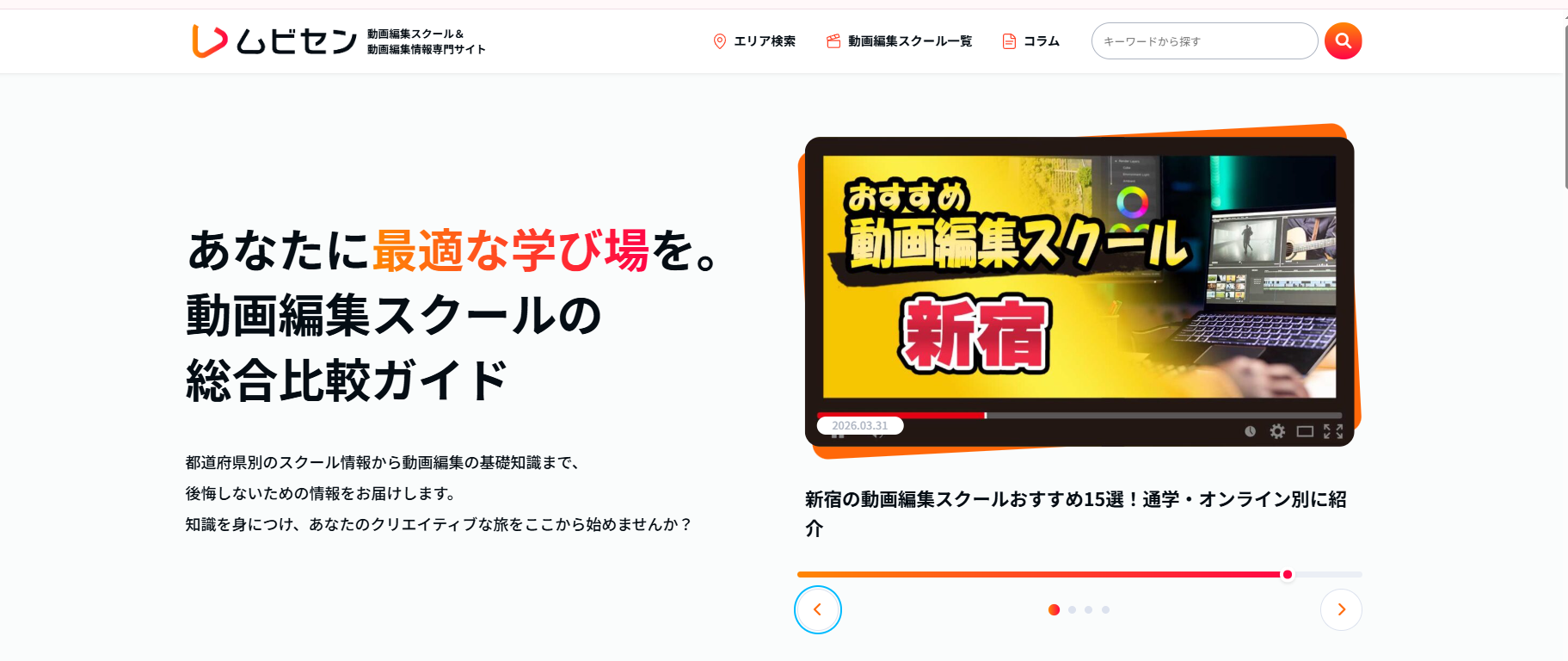 株式会社メディアエクシード(本社:東京都新宿区)は、2026年3月31日、動画編集スクールの比較・情報メディア「ムビ選」(https://mubisen.com/)を開設しました。