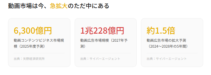 YouTubeやTikTok、Instagramなど動画プラットフォームの急成長を背景に、動画編集市場は年々拡大を続けています。