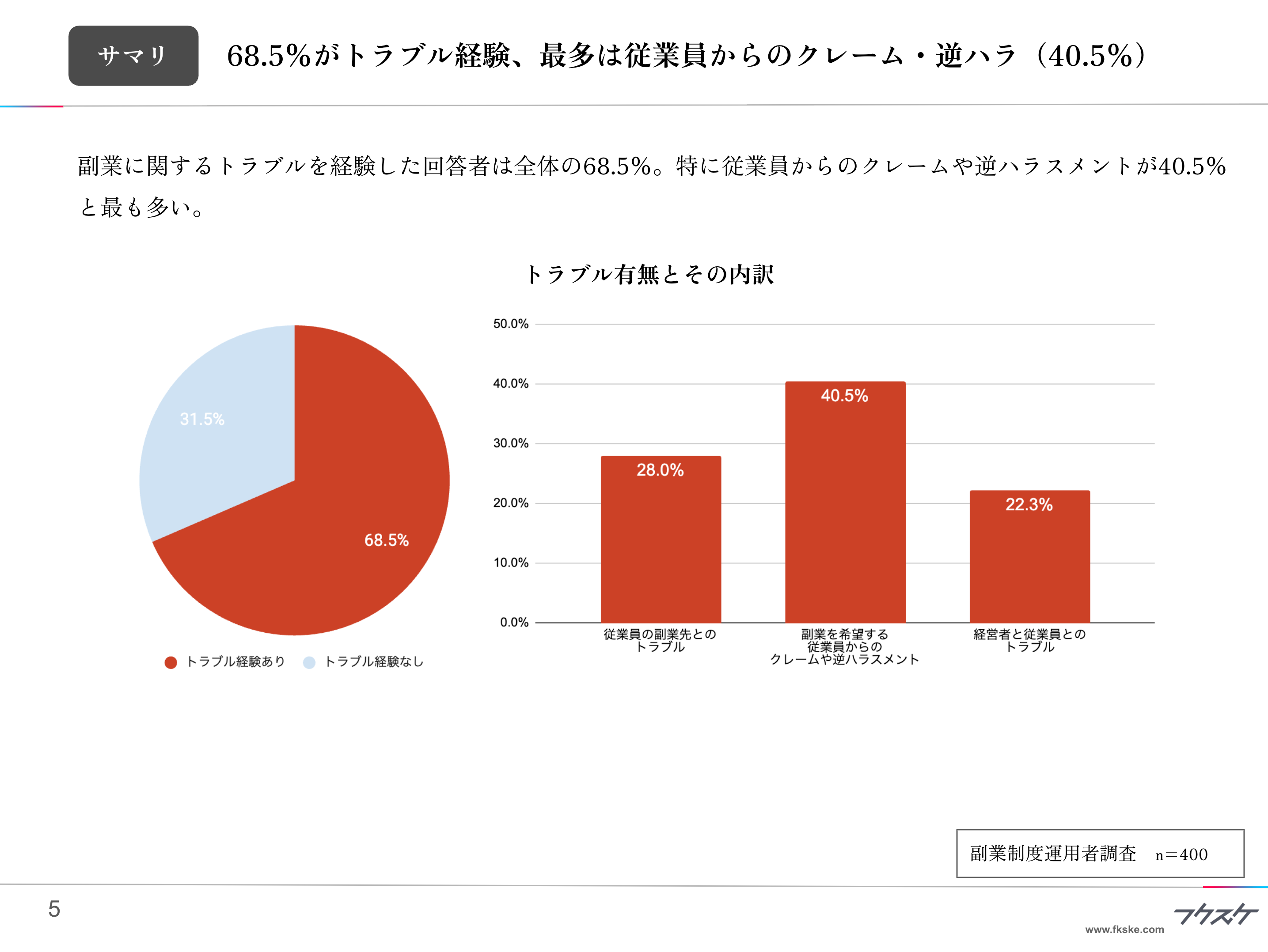 ■68.5%がトラブル経験、最多は従業員からのクレーム・逆ハラ(40.5%)