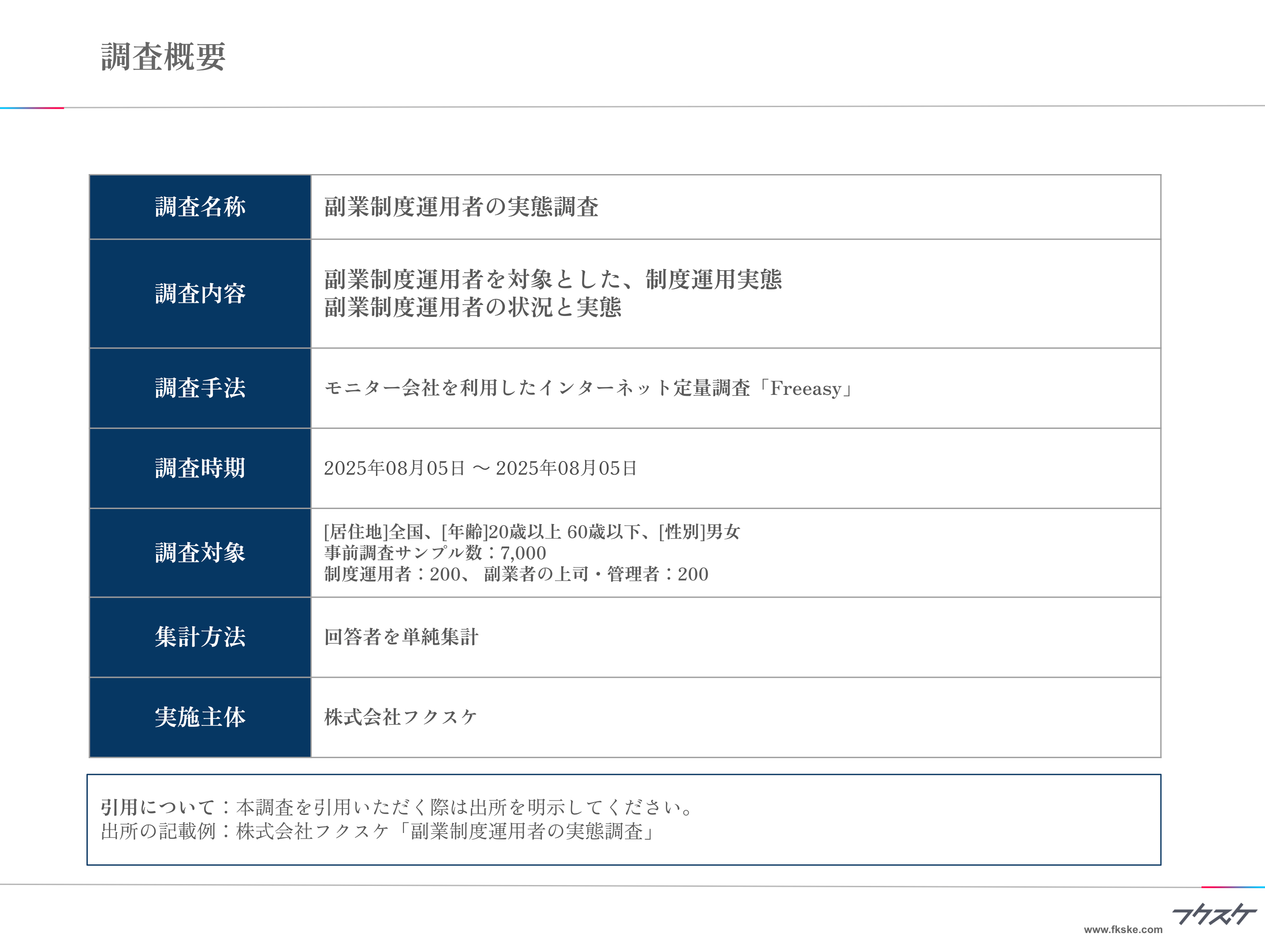 出所の記載例:株式会社フクスケ「副業制度運用者の実態調査」