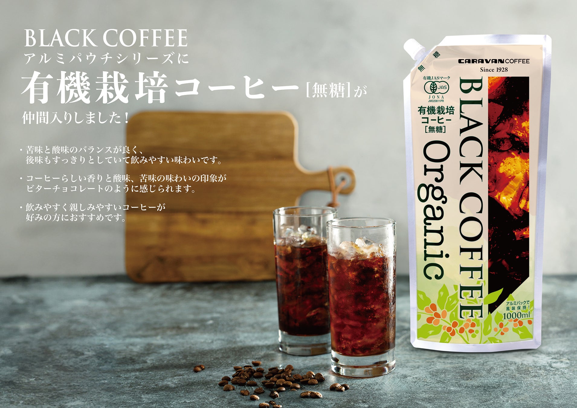 南アルプスの伏流水を使用した本格ネルドリップ製法のBLACK COFFEEアルミパウチシリーズに「有機栽培アイスコーヒー (無糖)」が仲間入りしました!