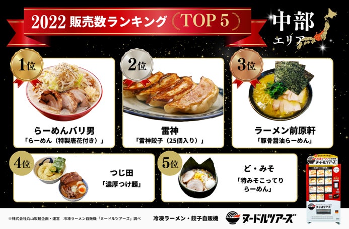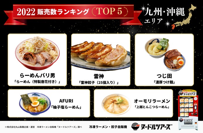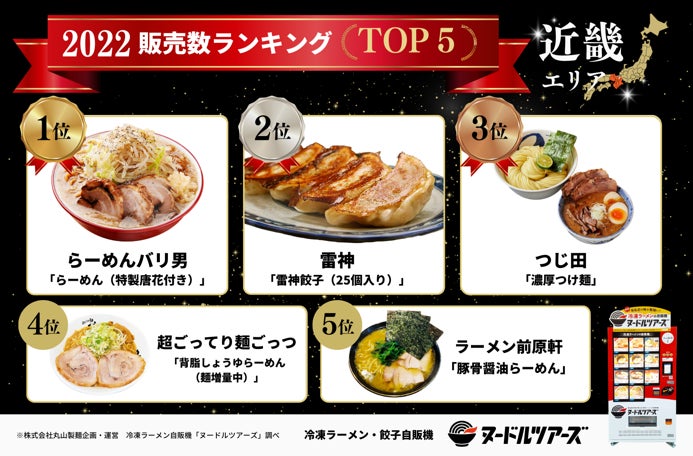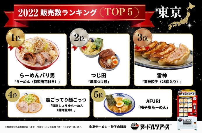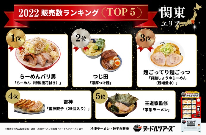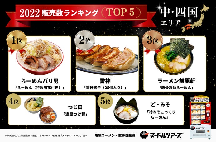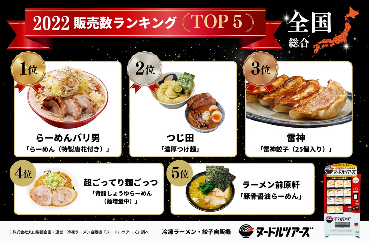 創業昭和33年業務用製麺所の丸山製麺、冷凍ラーメン自販機『ヌードルツアーズ』の「2022年販売数ランキングTOP5」を発表