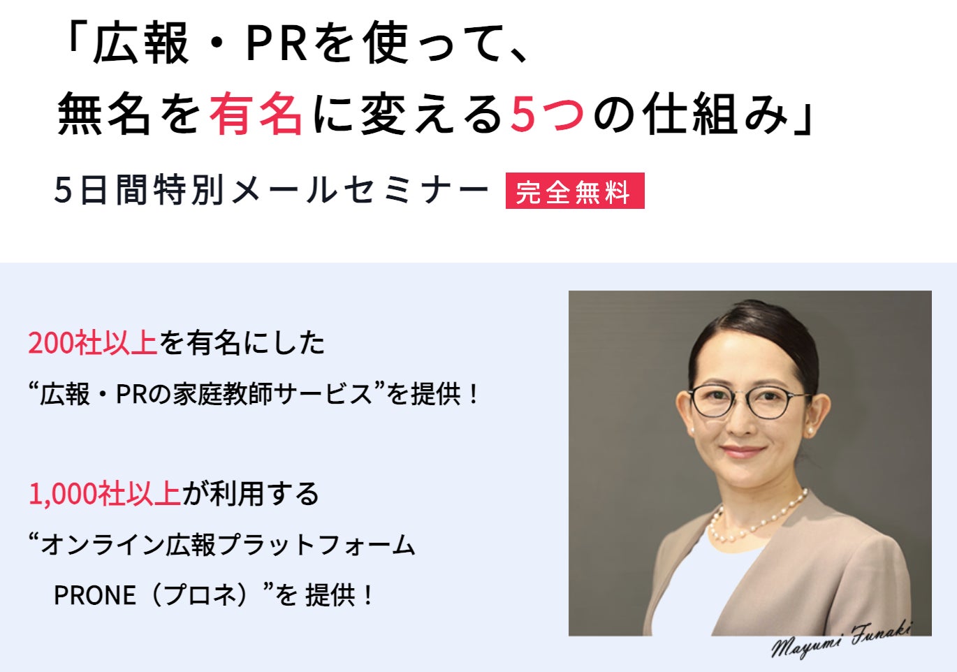 正しい広報・PRの手法が学べる「完全無料の5日間特別メールセミナー」開始、自社商品・サービスが知られていないことに悩む方に、有名に変えるノウハウを伝授