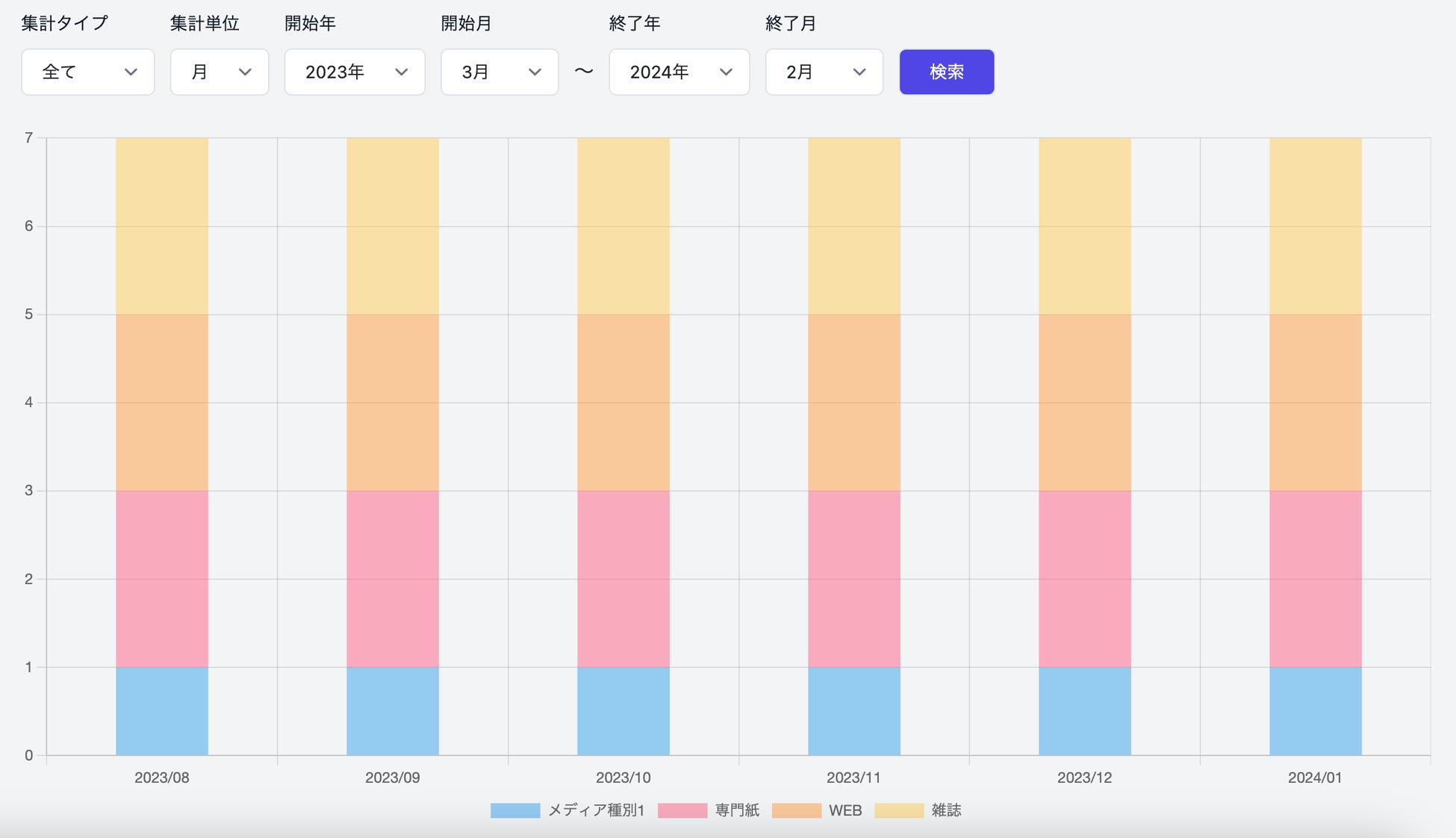 自社とつながりのある記者の人数や、メール配信件数、記者とのコンタクト数、取材/記事化件数など、広報活動数と実績数をリアルタイムに閲覧することが可能となります。取材/記事化などの結果だけでなく、広報活動自体が見える化されるため、広報担当者を評価することはもちろん、経営層に対してのフィードバックもしやすくなります。