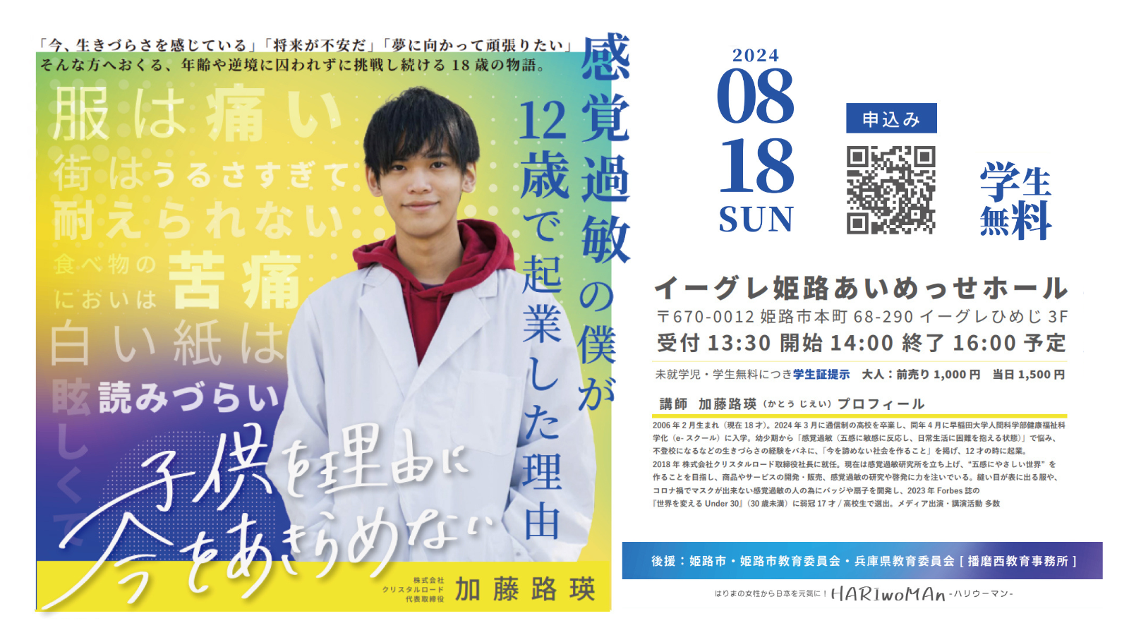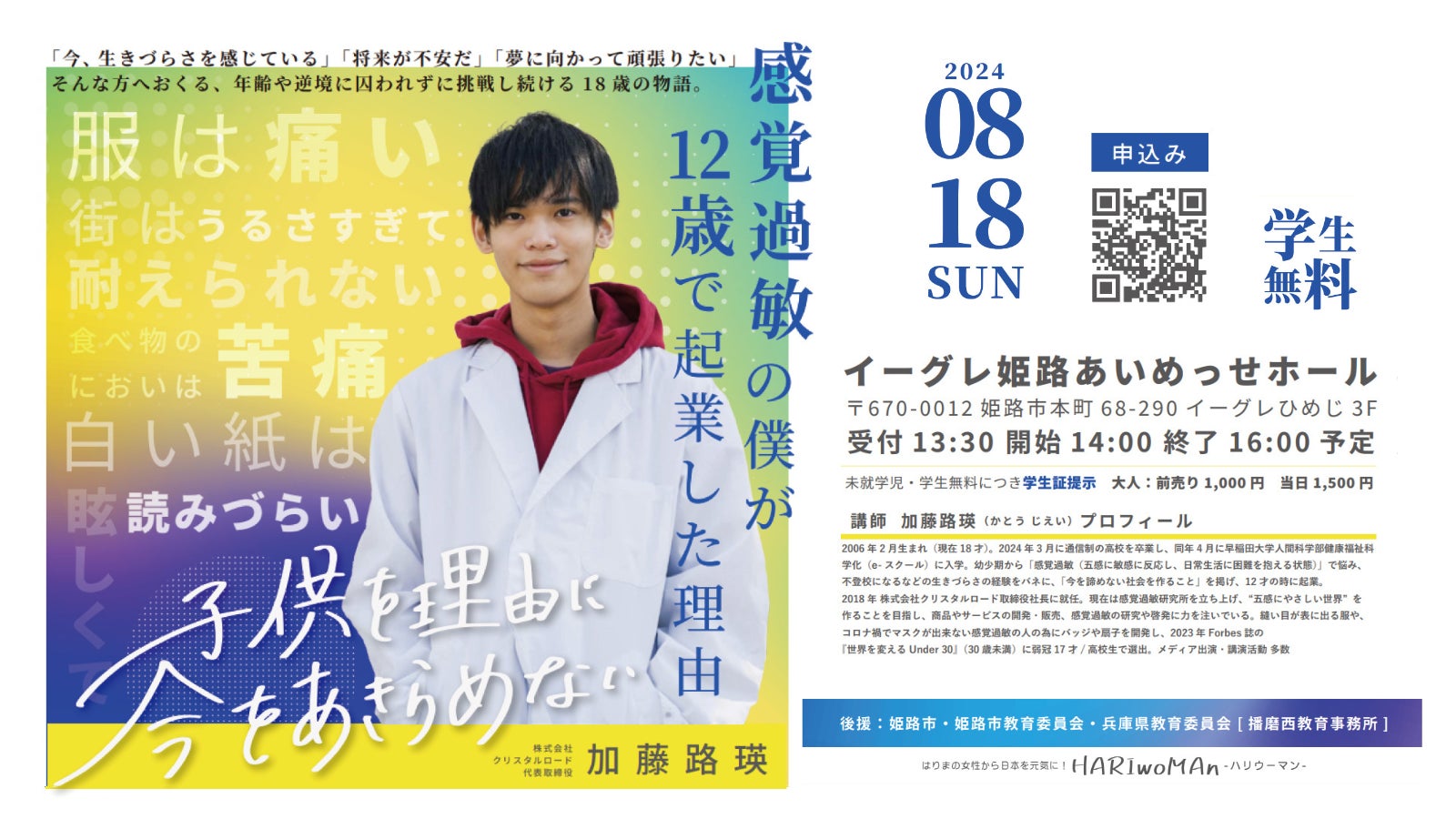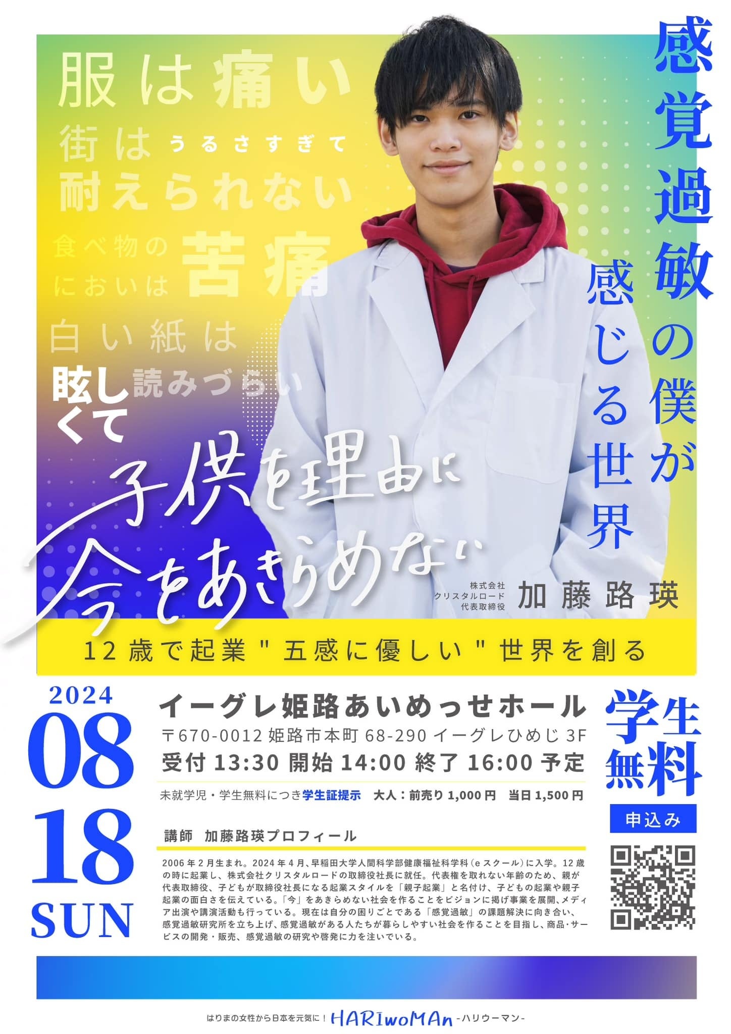 【講演のお知らせ(8月18日・姫路)】「子どもを理由に今をあきらめない」12才で起業した加藤路瑛よる起業や挑戦、生き方を伝える