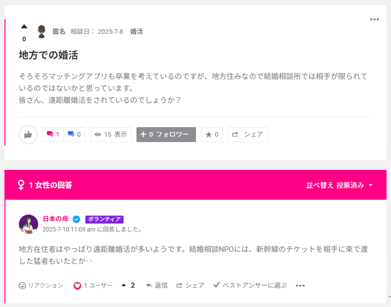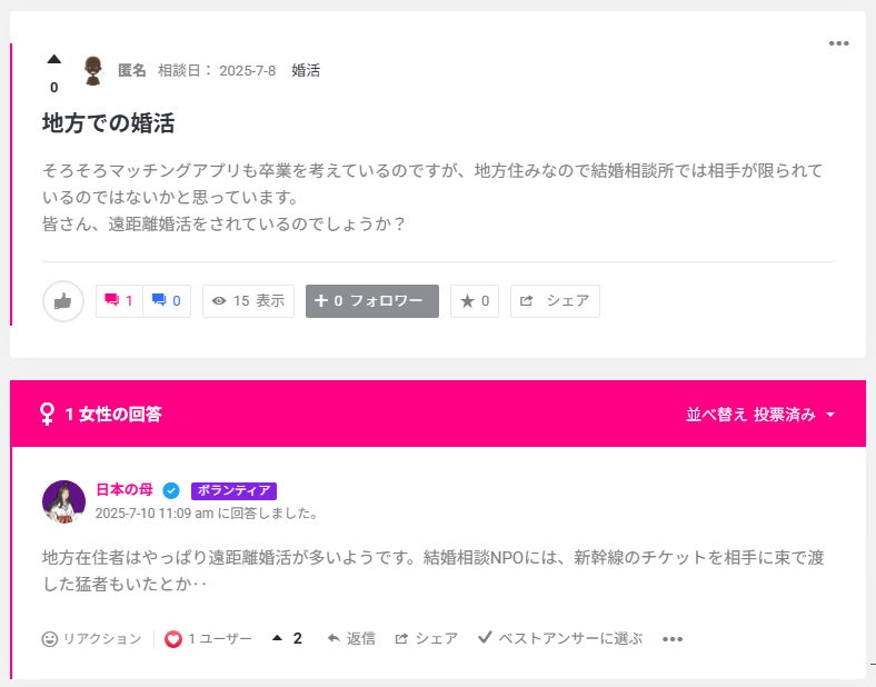 東京都認証特定非営利活動法人 結婚相談NPO(所在地:東京都武蔵野市)は、運営する結婚相談所「ブライダルサポーター」の会員以外にも結婚相談の門戸を開くべく、これまでクローズドベータとして運用をして参りました「結婚相談ドットコム」( https://kekkon-soudan.com/ )を2025年11月7日に一般公開致しました。利用者は匿名で質問・相談をし、結婚相談NPOに所属するプロの仲人や、ボランティアの皆様から回答を得ることができる無料の相談サービスサイトです。