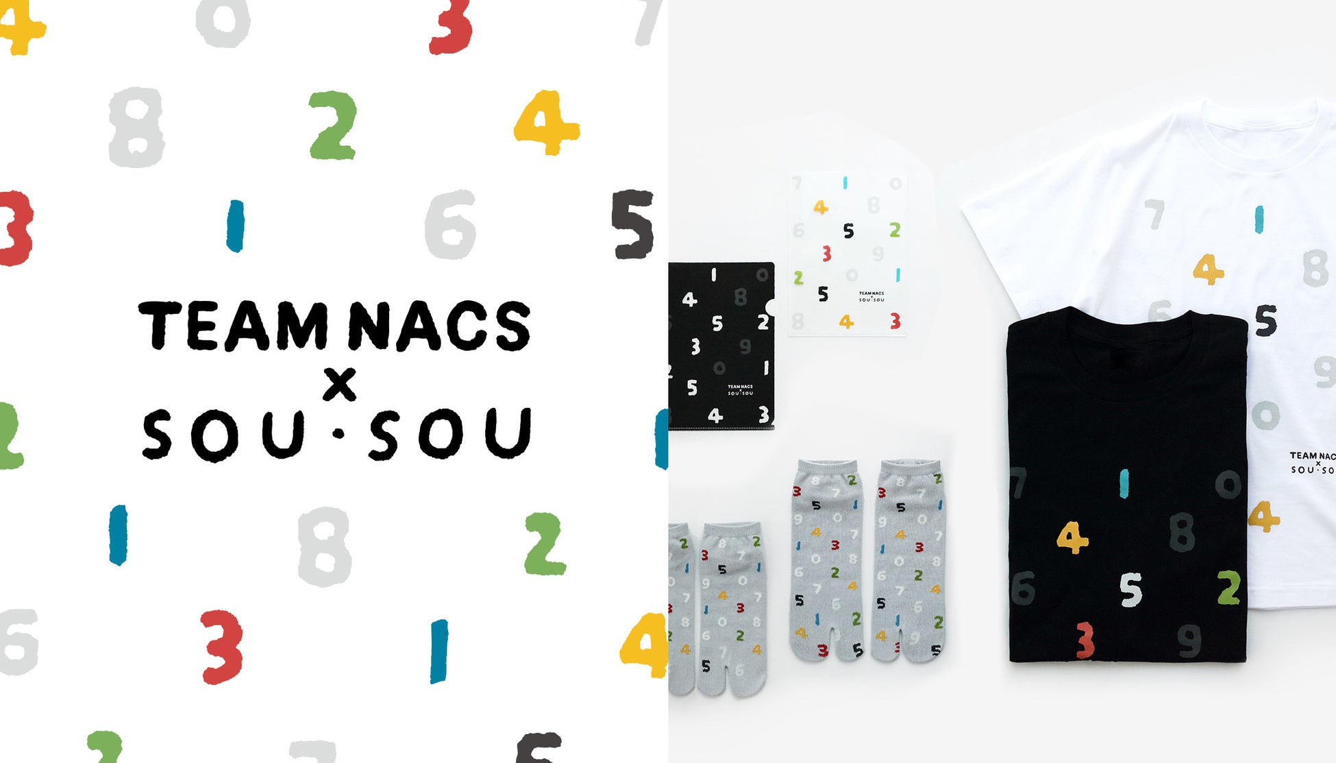 京都のテキスタイルブランド「SOU・SOU」(代表取締役:若林剛之)では、演劇ユニット「TEAM NACS」25 周年記念作品『LOOSER 2022』の配信を記念した、コラボレーショングッズを制作しました。メンバーのみなさんのNACS 番号とそれぞれのメンバーカラーを、SOU・SOU を代表するテキスタイルデザイン「SO-SU-U 柄」に反映させました。コラボレーショングッズは、T シャツ、足袋下(たびした)、クリアファイルセットの3アイテム。TEAM NACSのオフィシャルサイトにて予約受付中です(「SOU・SOU」での取り扱いはありません)。