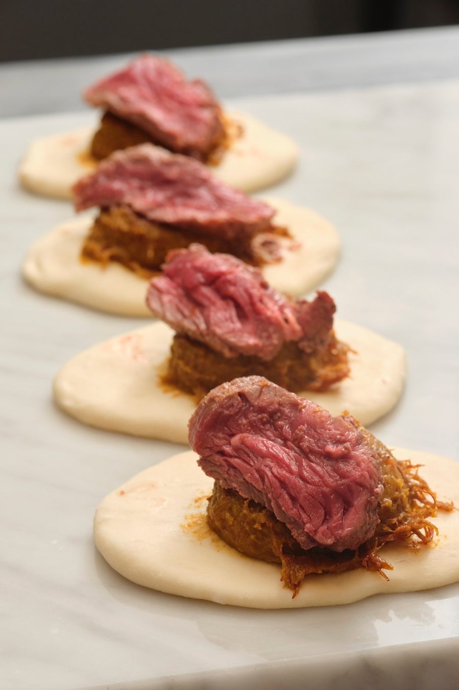 生地はカレーの香りを邪魔しない、食べた瞬間のスパイスが引き立つ配合にしており、また具材の食感と小麦の香りが同時に味わえる配合になっております。