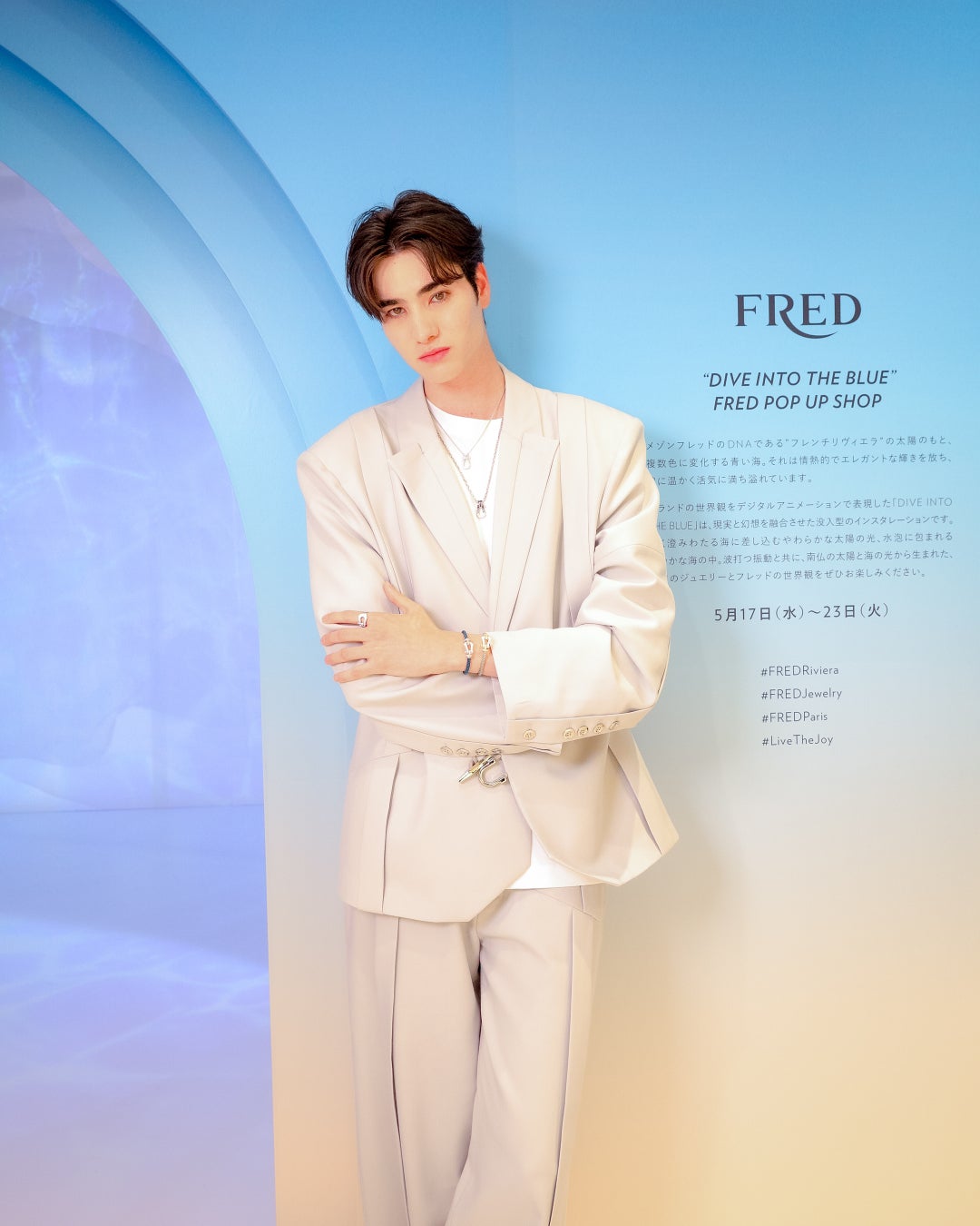 本ポップアップを祝福し、俳優の前田敦子さん、モデルのせいらさん、俳優の山下幸輝さん、モデル/タレントのリンドウさんが来場し、皆さまフレッドのジュエリーと共にブルーの世界観を堪能頂きました。