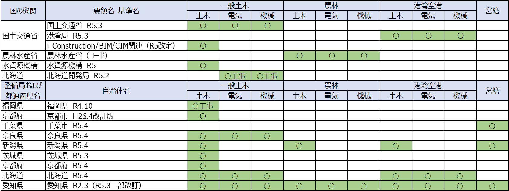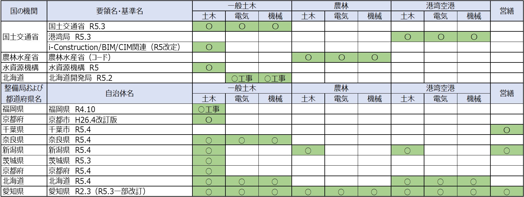 ※国土交通省R5.3への対応は、2023年9月リリースのVer.23.1で対応しています。また、Ver.24リリース以降も、日本下水道事業団、富山県、和歌山県、鹿児島県、静岡県、群馬県、熊本市などが定める各規準・要領への対応を順次予定しています。