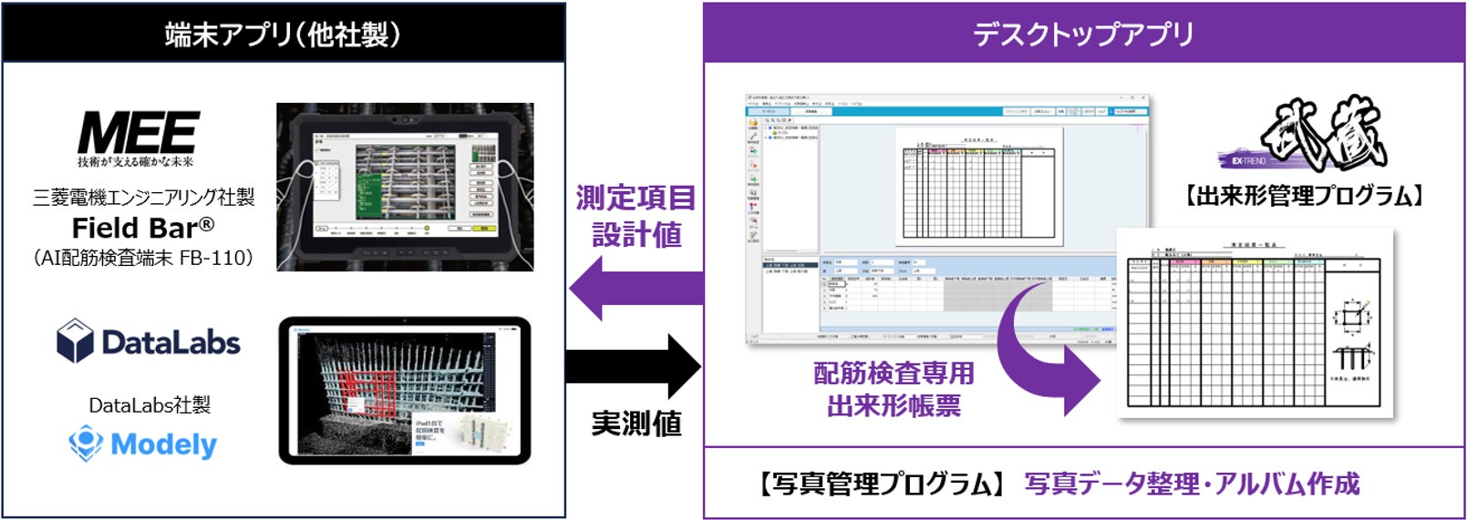 ※他社製配筋検査アプリ(出来形管理プログラムとの連携に対応)