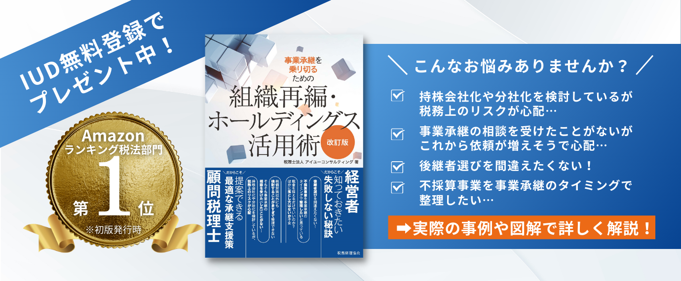 「税理士による税理士のためのサービス」として、顧問先の相続・事業承継案件のアドバイザリーサービス「IUダイレクト」を提供しています。現在全国170社以上の先生方にご登録いただいており、顧問先の相続や事業承継に関するご相談をはじめ、スポットでの対応など実施中です。無料登録していただくと、毎月会員限定の記事が閲覧できるほか、今なら著書のプレゼント企画も行っております。ぜひ公式サイトよりご登録ください。