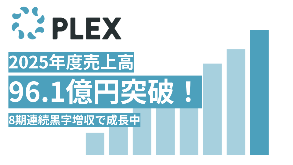 株式会社プレックス(本社:東京都中央区、代表取締役:黒﨑俊)は、2025年度(2025年4月〜2026年3月)の売上高96.1億円を突破し、8期連続の黒字増収となったことをお知らせいたします。