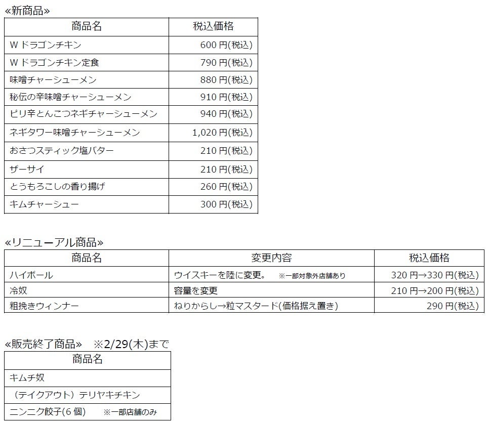 熱烈中華食堂日高屋 3月1日(金)よりグランドメニューをリニューアル!