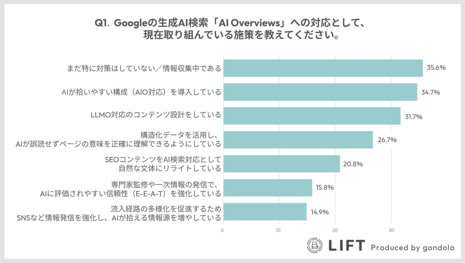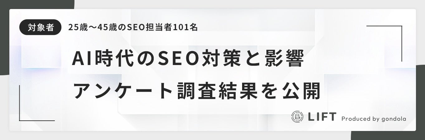株式会社ゴンドラ(東京都千代田区、代表取締役社長 古江恵治)は、「AI OverviewsによるSEO影響と対応実態」に関するアンケート調査を実施し、調査結果を当社マーケティングメディア「LIFT」にて公開しましたので、お知らせいたします。