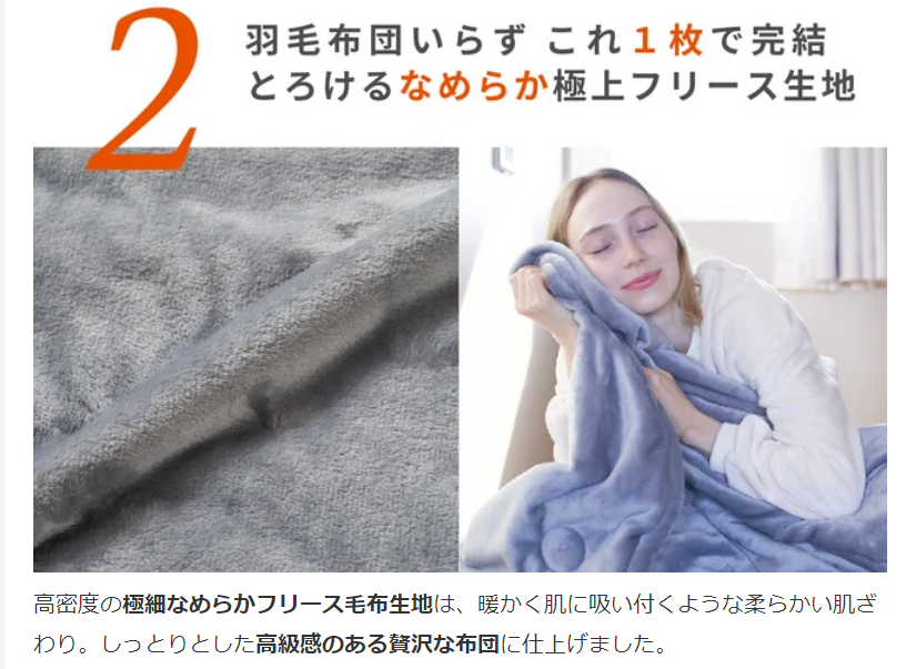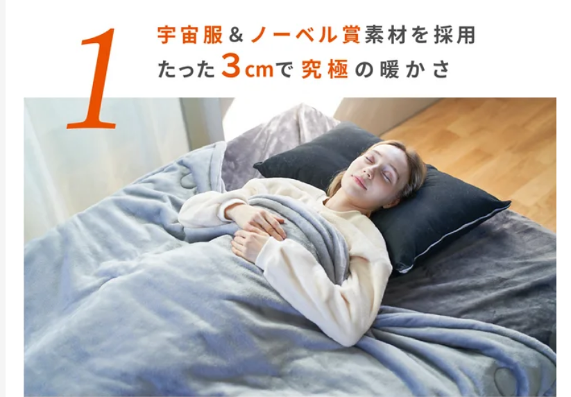①宇宙服素材とテクノロジーを駆使した【断熱保温4層構造】羽毛布団がいらない1枚2役の掛け布団