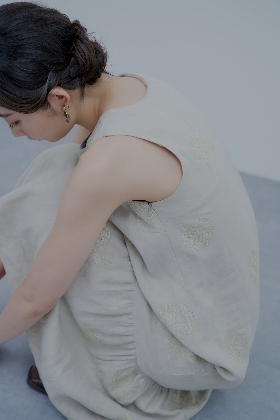 すべての生地に天然繊維を使用し、小さな端切れを一つひとつ丁寧に組み合わせて表現されたレースは、着る人本来のナチュラルな美しさを引き出し繊細でどこか儚い魅力を放ちます。
