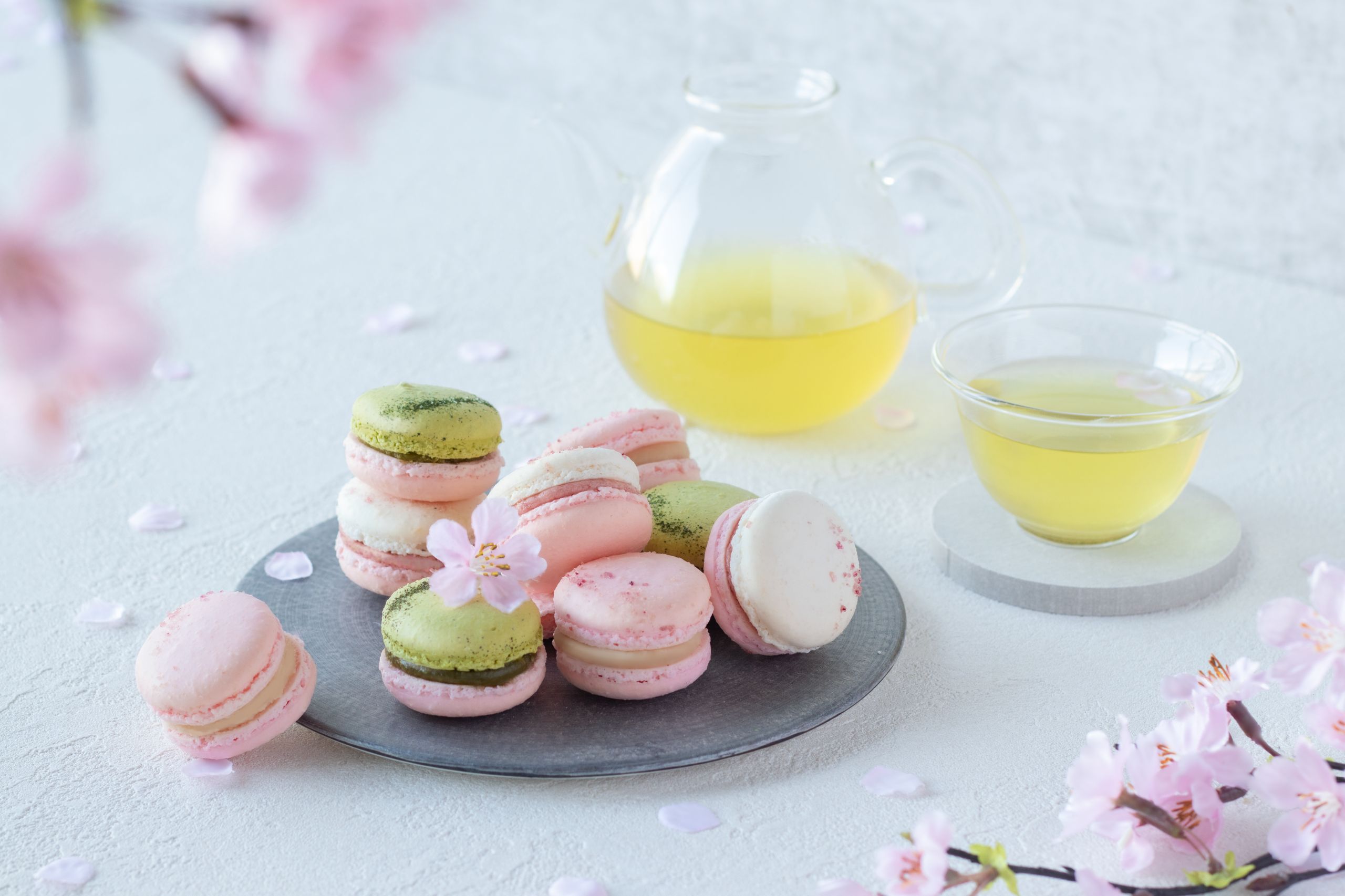 桜薫るマカロンと日本茶で、贅沢な春のティータイムを。