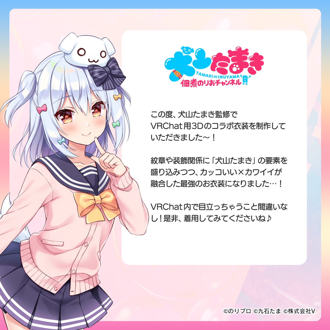 YouTube登録者数94万人超のVTuber犬山たまきとコラボ!VRChat向けアバター衣装を株式会社Vが制作・販売開始