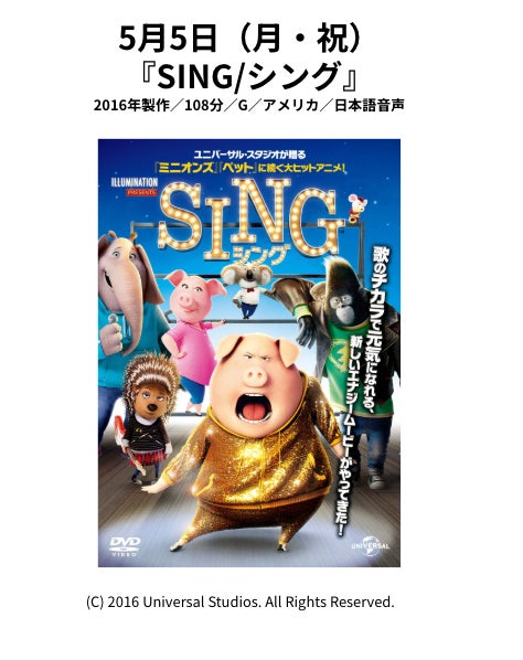 お子さまと一緒に楽しめる映画『SING/シング』を上映いたします。