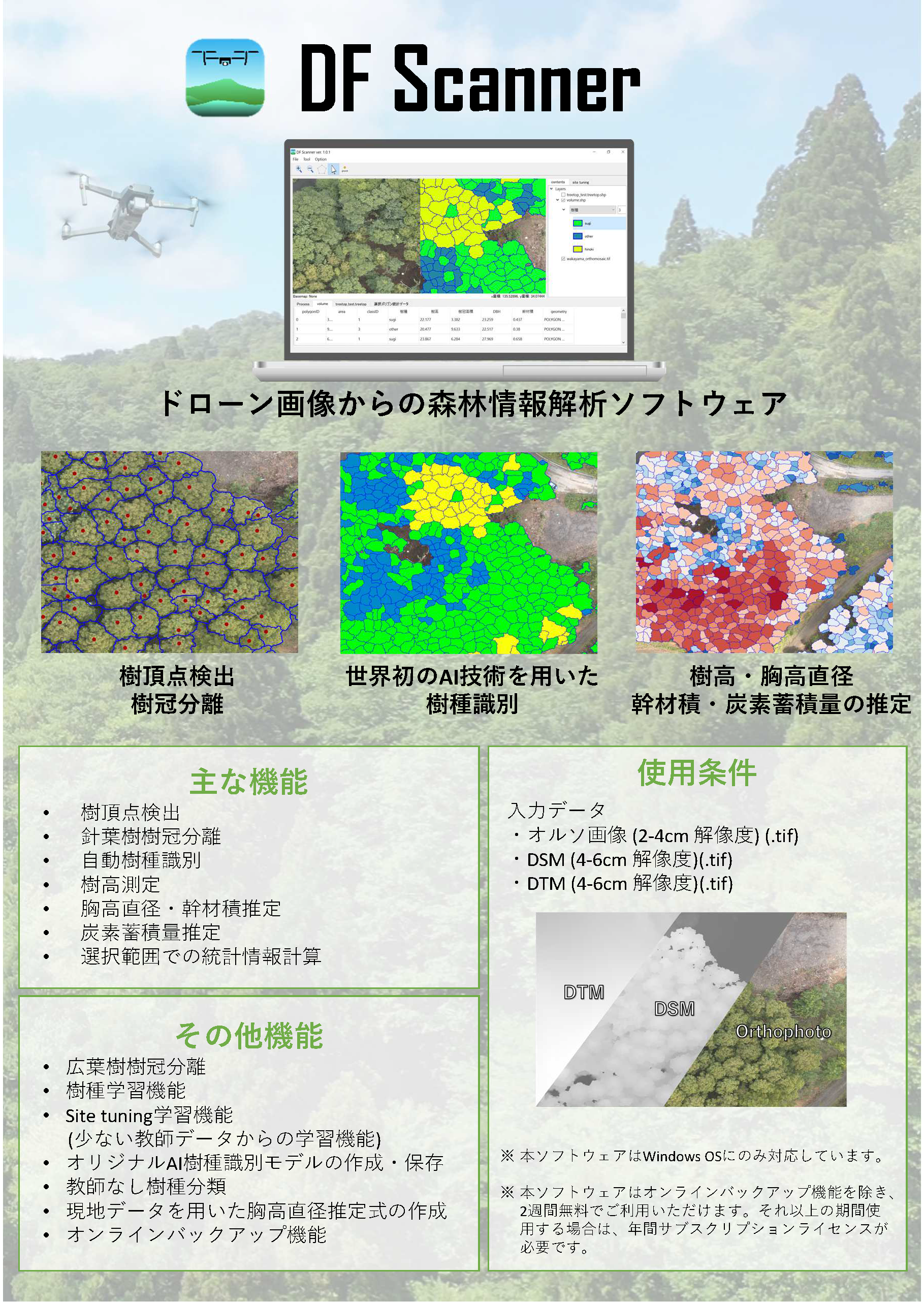 「ヘルスケアソリューション」「地球環境ソリューション」を主要事業とする株式会社イメージワ ン(本社:東京都品川区、代表取締役社長:川倉 歩、以下「当社」)は、京都大学発のスタートアッ プベンチャーDeepForest Technologies 社(本社:京都府京都市 代表:大西 信徳)が開発した、ドローンデータから森林情報を解析するソフトウェア「DF Scanner」および「DF LAT」 の販売を開始いたしました。
