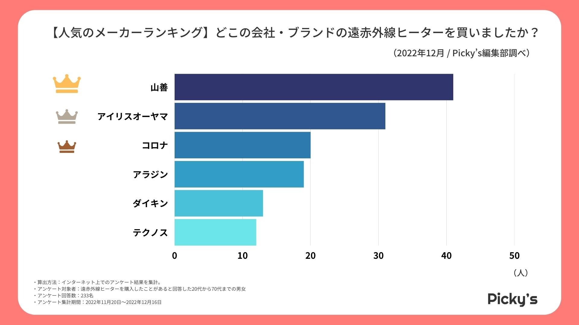 このたびPicky’s(https://rentry.jp/note/)では、遠赤外線ヒーターを買う際に意識していることや人気のメーカー・ブランドなどをインターネット上でアンケート調査を行い、ランキングを作成いたしましたので発表いたします。