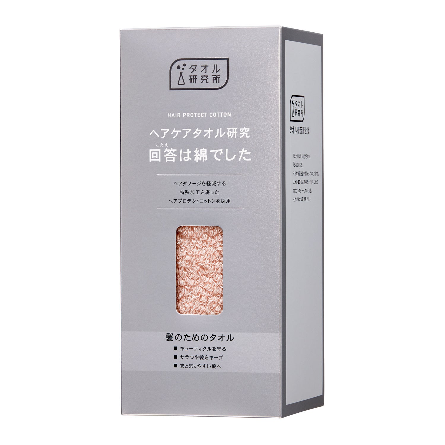 本製品は、タオル研究所として初の美容領域に向けた研究開発商品です。日常のヘアケアにおいて見過ごされがちな「タオルドライ時の摩擦」に着目し、ヘアダメージを軽減する特殊加工を施した、ヘアプロテクトコットンを採用しております。