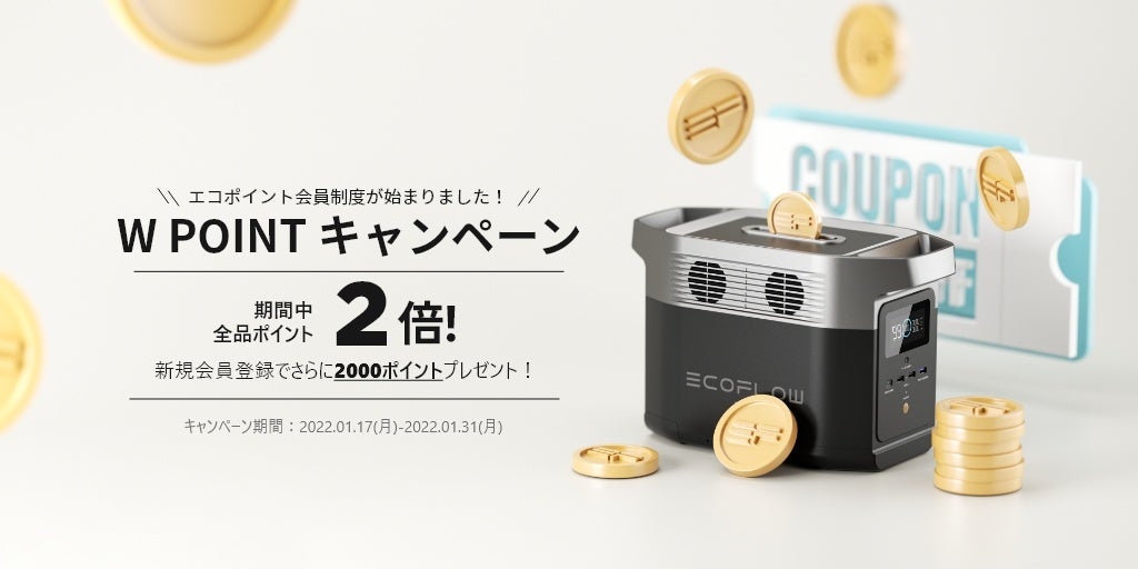 EcoFlowは、日頃からEcoFlow製品を応援してくださっている皆様へ、感謝の気持ちを還元するために、2022年1月17日(月)より、「エコポイント」を開始いたします。