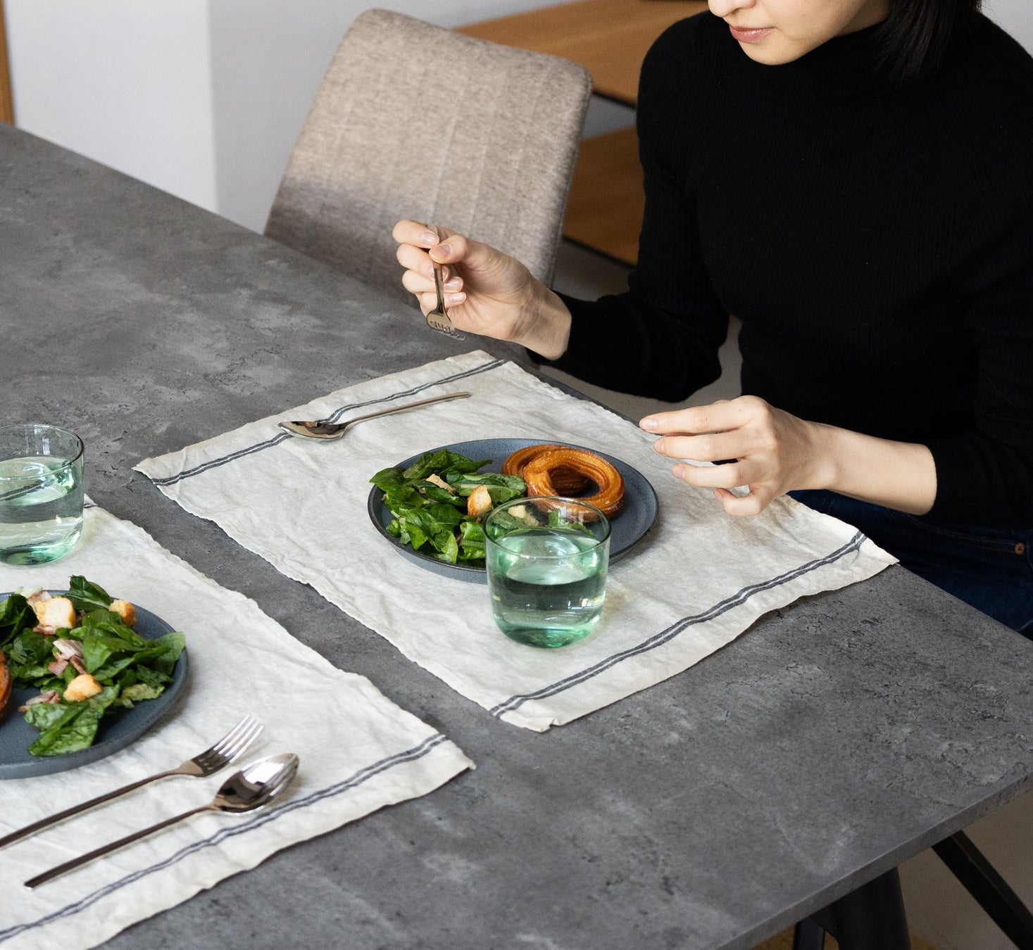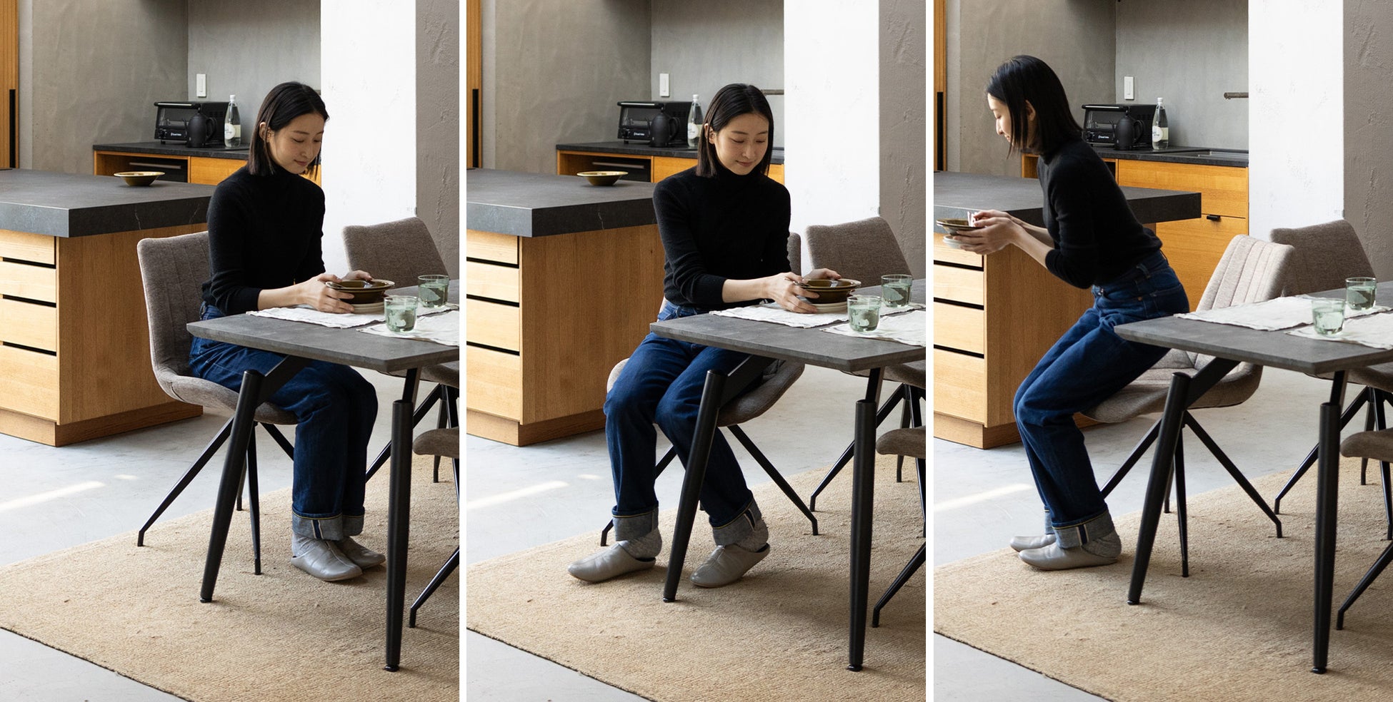 どうしても生活感が出てしまうダイニング。存在感のある天板と、対照的な細身の脚を組み合わせたダイニングセットで、洗練された空間をご自宅に。