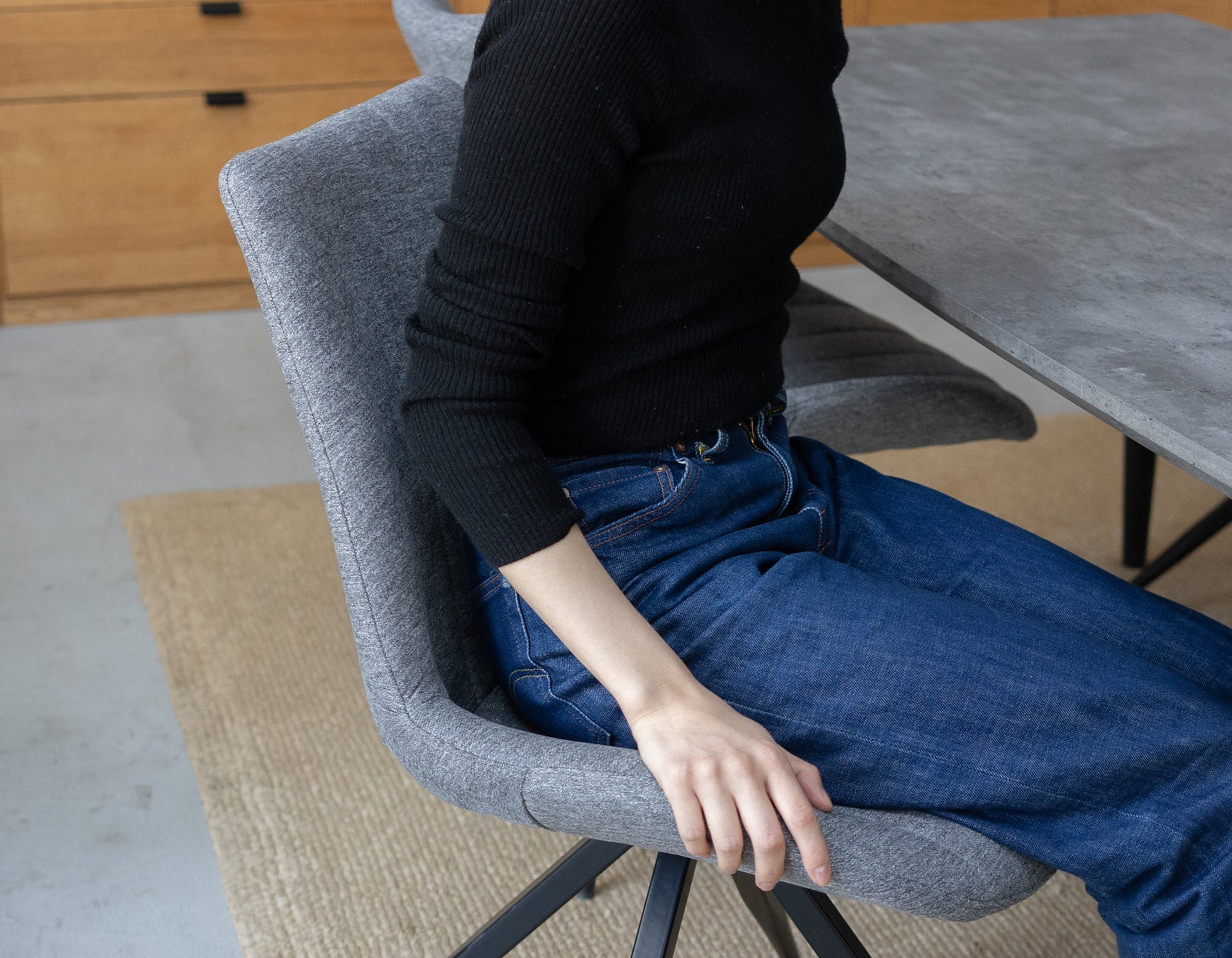 立ち座りの時にチェアを引く必要のない、回転式の座面は場所も取らず便利。引きずって床に傷をつける心配もありません。座ったまま身体の向きを変えられるので、スムーズな立ち座りができます。