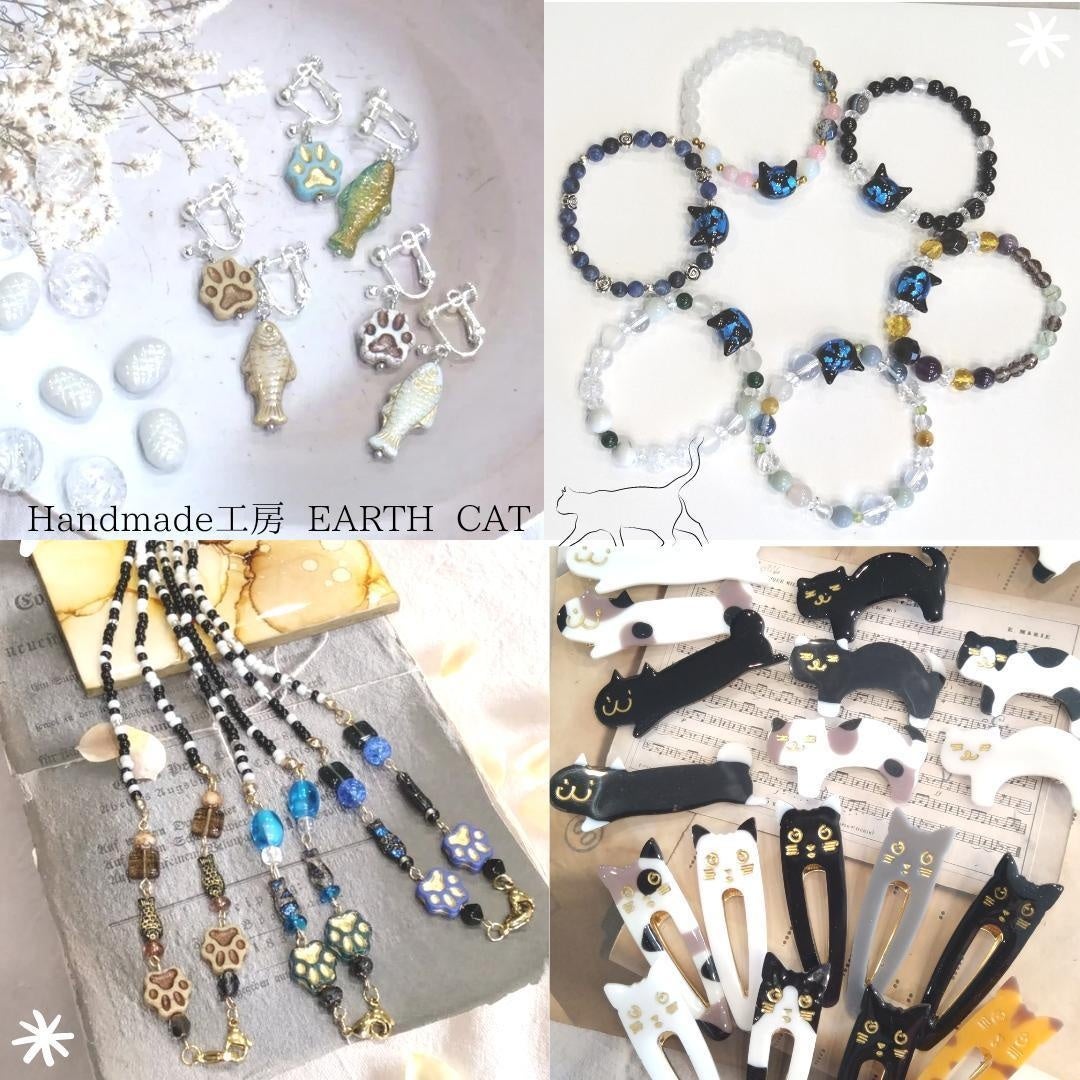 天然石はもちろん、猫や肉球モチーフを使用したアクセサリーは心が躍ります。