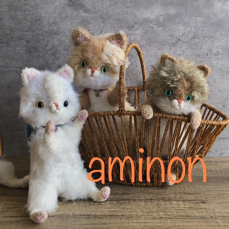まるで本物の猫ちゃんのようなふわふわのあみぐるみの中にはワイヤーが入っており、立ったり座ったり自由にポーズを変えられ、とてもリアルです。
