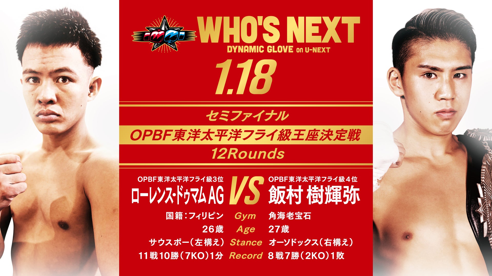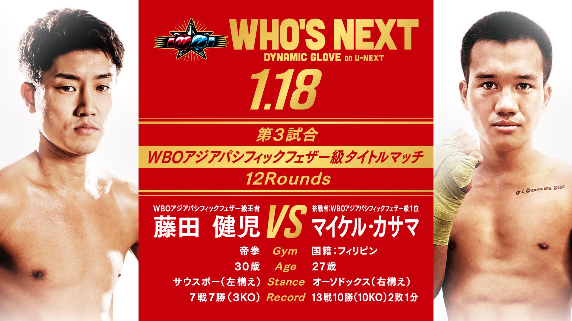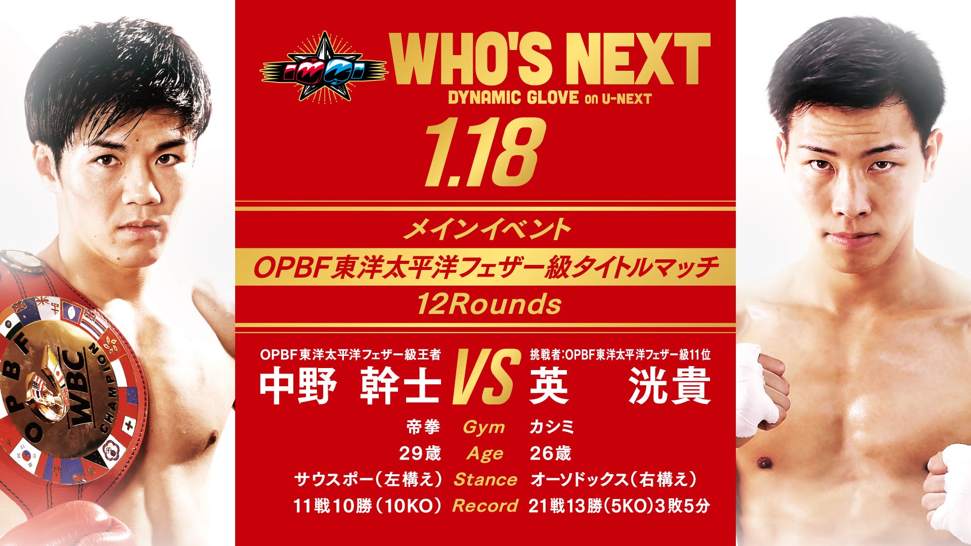 1月18日(土)後楽園ホールにて開催される「WHO‘S NEXT DYNAMIC GLOVE on U-NEXT Vol.28」を、U-NEXTにて独占ライブ配信いたします。