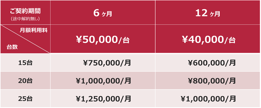 ✓ 現場環境の変化に合わせて活用できるよう、最低契約期間を6ヶ月に設定