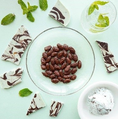チョコに含まれるポリフェノールとアーモンドの豊富なビタミンEで、抗酸化作用が期待できます。夏らしくミントの清涼感をプラスした、アーモンドチョコのサマーレシピです。