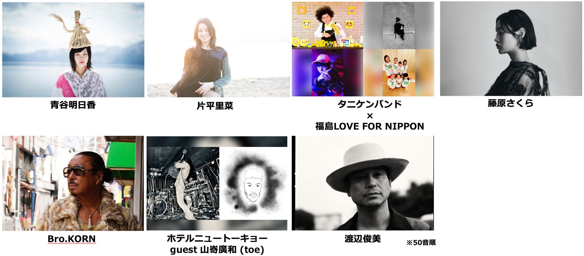 さらに福島県川内村生まれ、富岡町育ちでTOKYO No.1 SOUL SET、THE ZOOT16、ソロでの活動など、様々な音楽性を発揮してきた渡辺俊美も出演が決定しました。