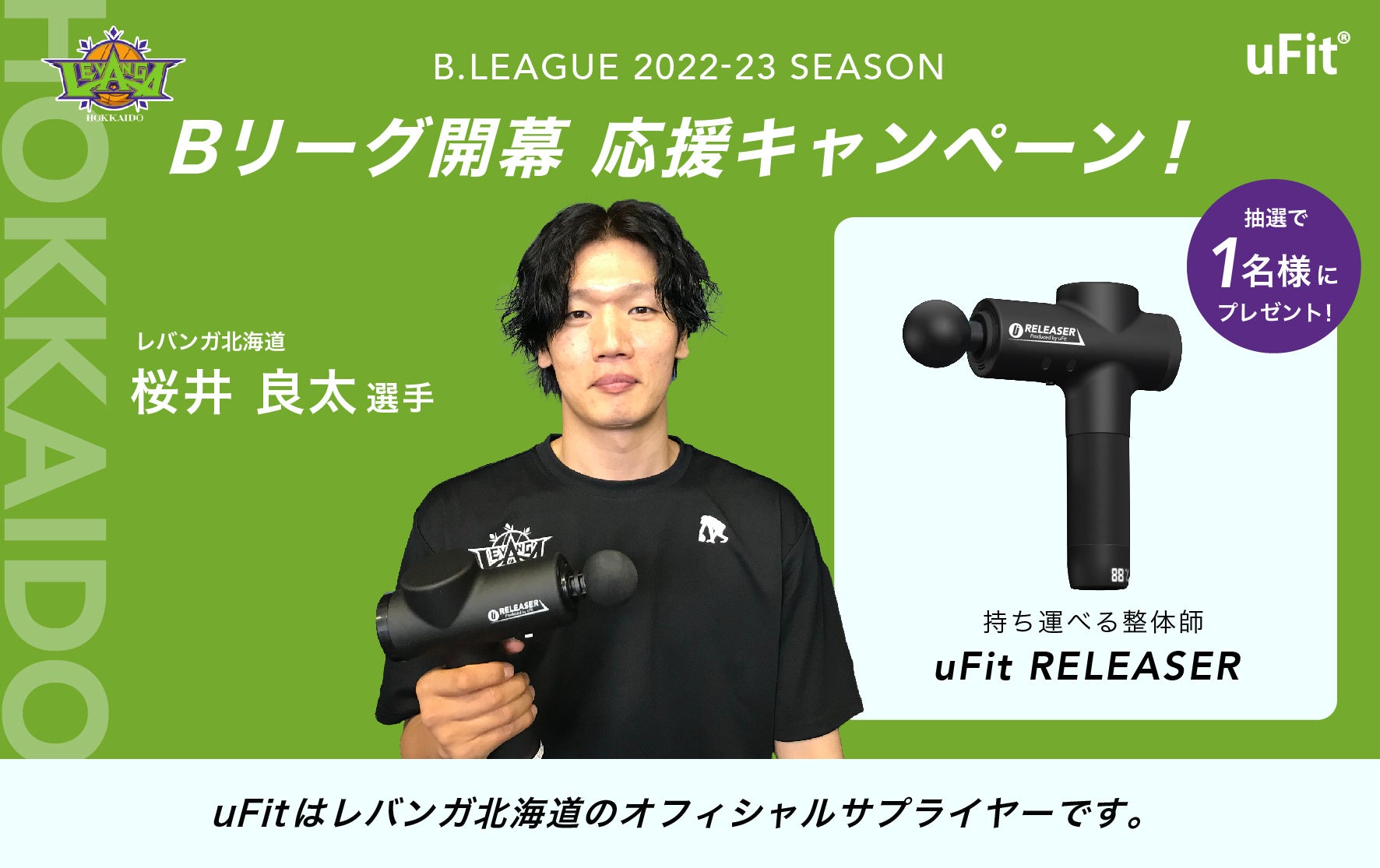 uFit は選手たちがケガなくシーズンを戦い抜けるようサポートしていくとともに、選手を応援する方々にもセルフケアの大切さを知っていただくため、Bリーグ開幕に向けてコメントを頂いた「レバンガ北海道」「群馬クレインサンダース」の応援キャンペーンを実施いたします。