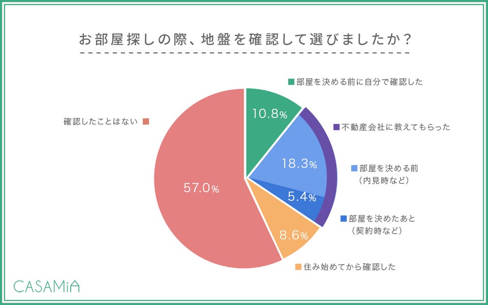 今回の調査結果から、地震や災害を不安に感じつつも、実際にはハザードマップや地盤を確認しないままにお部屋を決めるケースが多いことが明らかになりました。