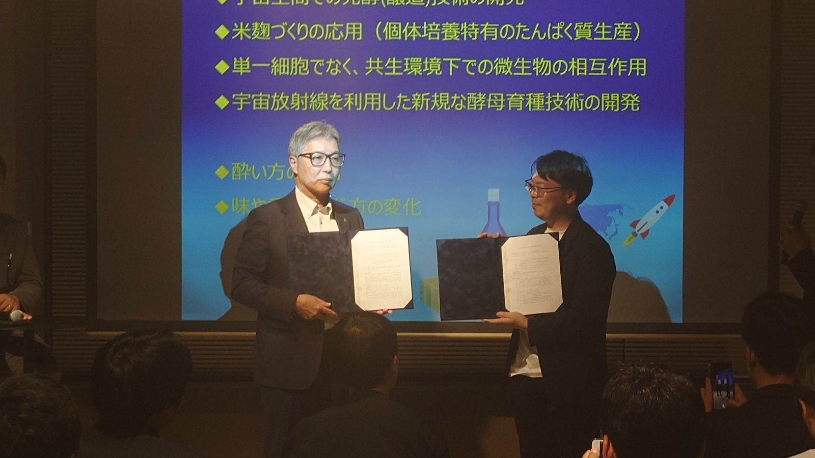 宇宙環境を利用した日本酒づくりに向けた協働についてIDDKと菊正宗酒造がMoUを締結