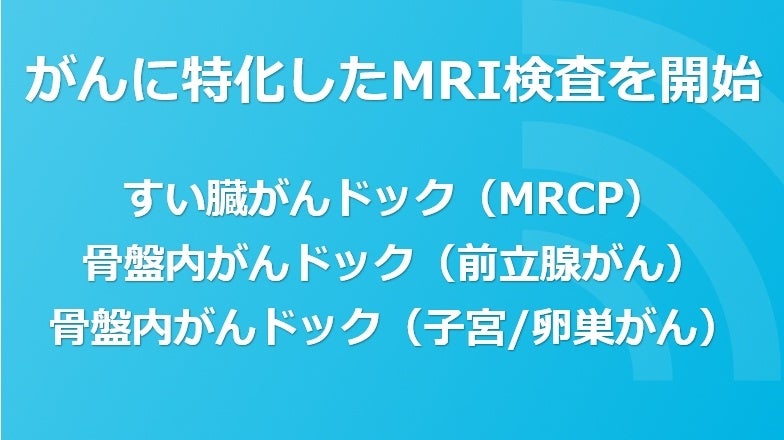 “早い・リーズナブル・正確”な脳の健診「スマート脳ドック」のシステムを活用し、「すい臓がんドック(MRCP)」「骨盤内がんドック(前立腺がん)」「骨盤内がんドック(子宮/卵巣がん)」の検査を実施