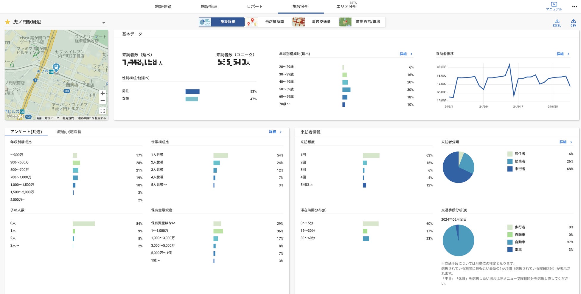 目的とした来訪者属性分析