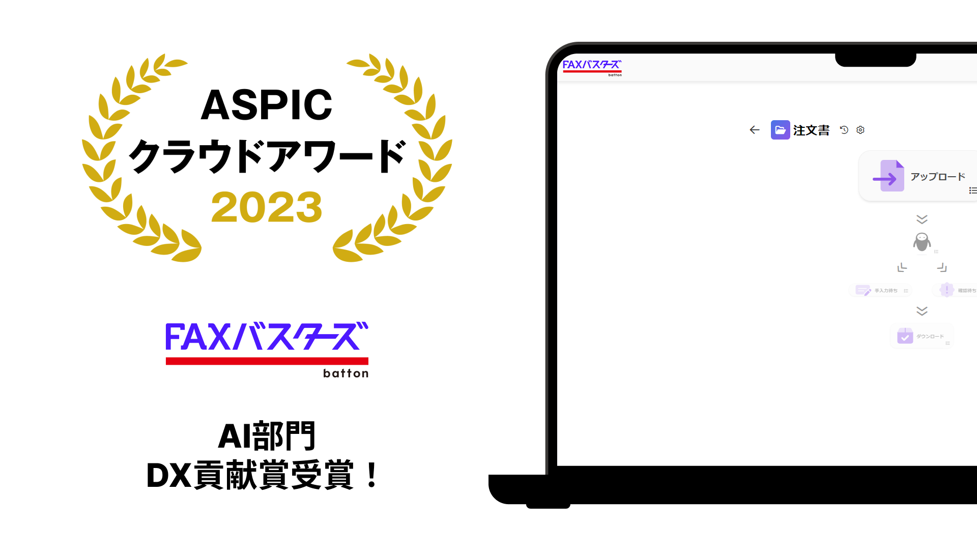 株式会社batton『FAXバスターズ』、総務省後援 第17回「ASPICクラウドアワード2023」にて、AI部門DX貢献賞を受賞