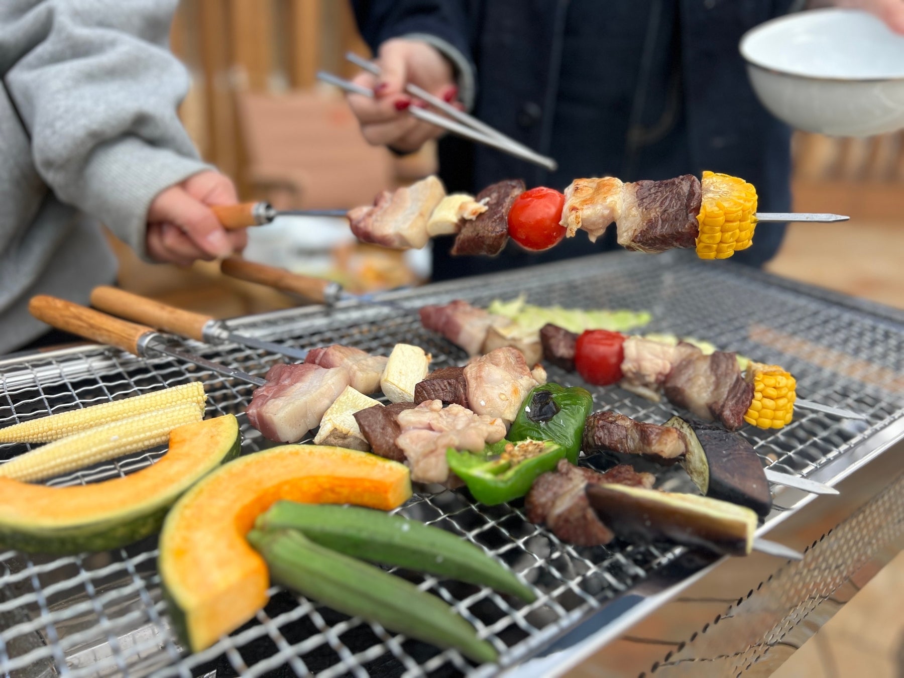DAYキャンプやBBQのみのご利用も受け付けております。志方牛や、加古川産のお野菜を味わえるBBQセットをご用意。