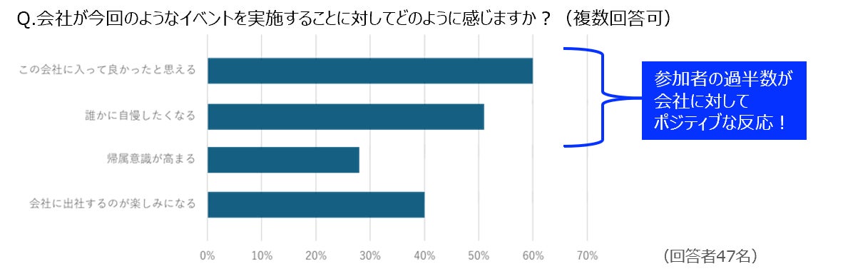 プレゼントした家族が驚いたり喜んだりしたことに加え、部屋に飾ったコーポレートカラーの花を通じて、家族と会社や仕事について話をするきっかけになった、という声が多く見られ、社員の家族にとっても新鮮で印象に残る創立記念日の体験だったようです。