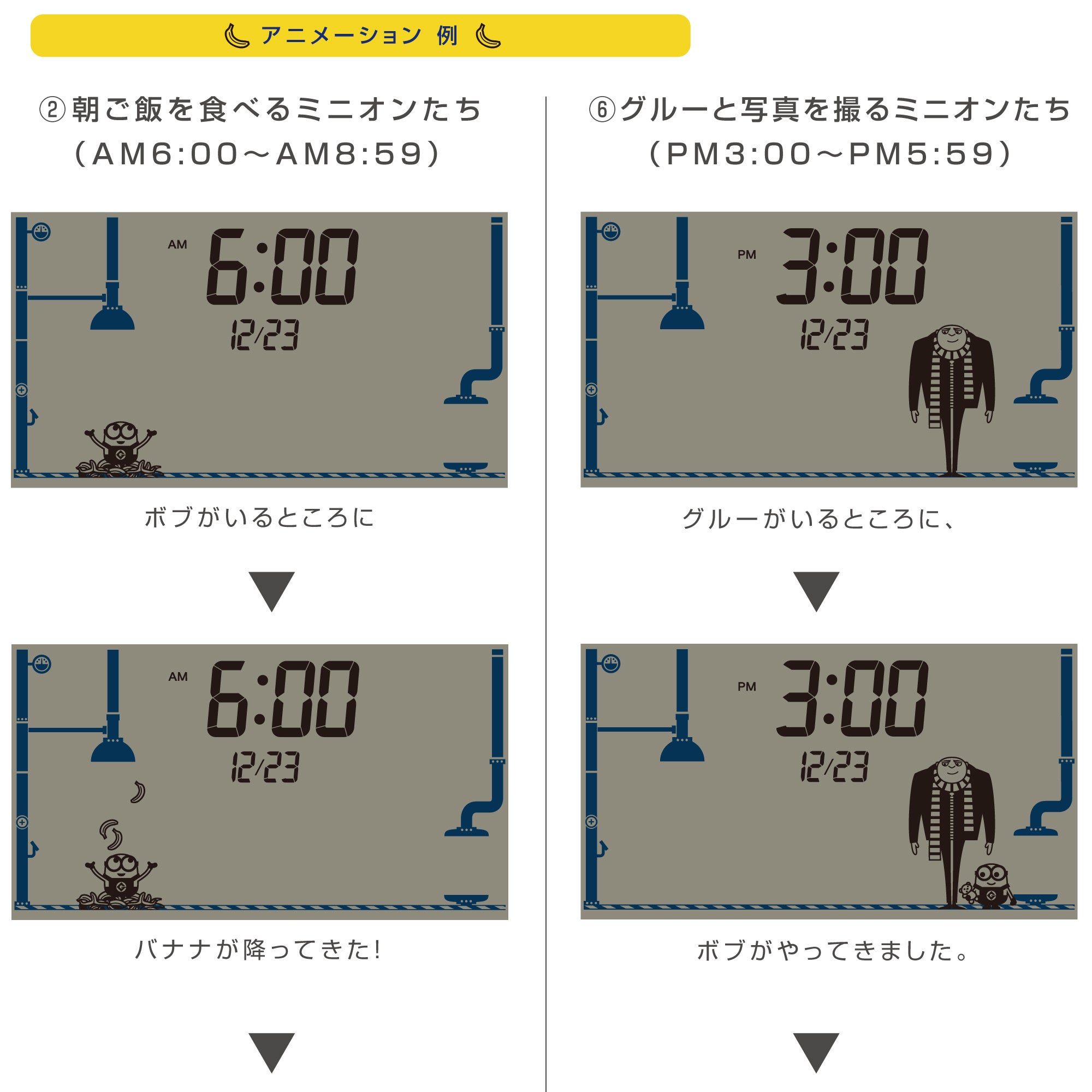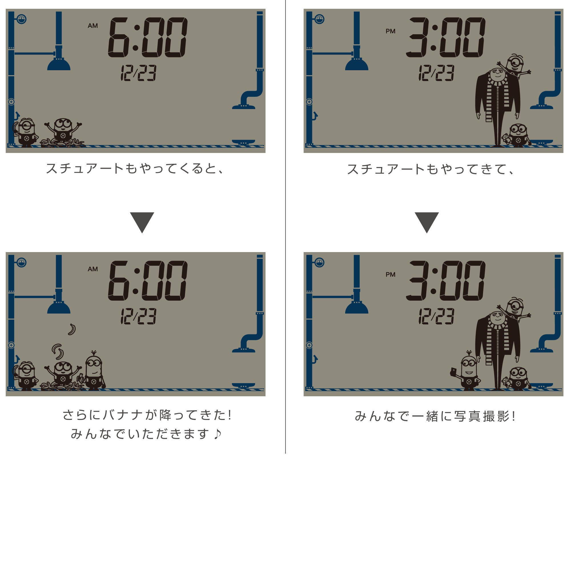 アラーム音・時報音・特別日アニメーションにはミニオンの音声を使用しております。