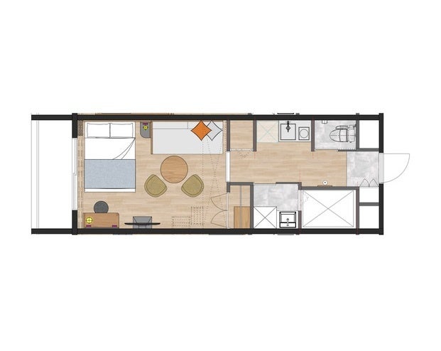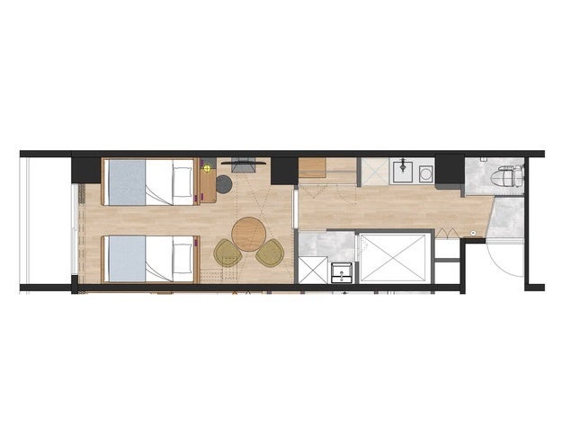 全室26平米以上のゆったり空間。ドラム式乾燥機付洗濯機、電子レンジ、簡易キッチンを完備し、利便性・快適性・居心地のよさを追求したアパートメントスタイルホテル